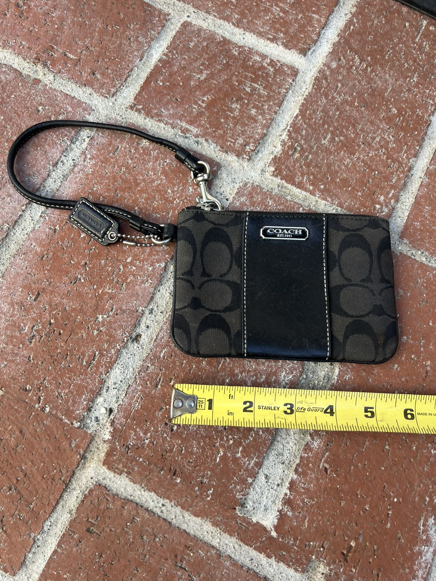 Coach Mini Wristlet Card Holder Wallet Black Logo