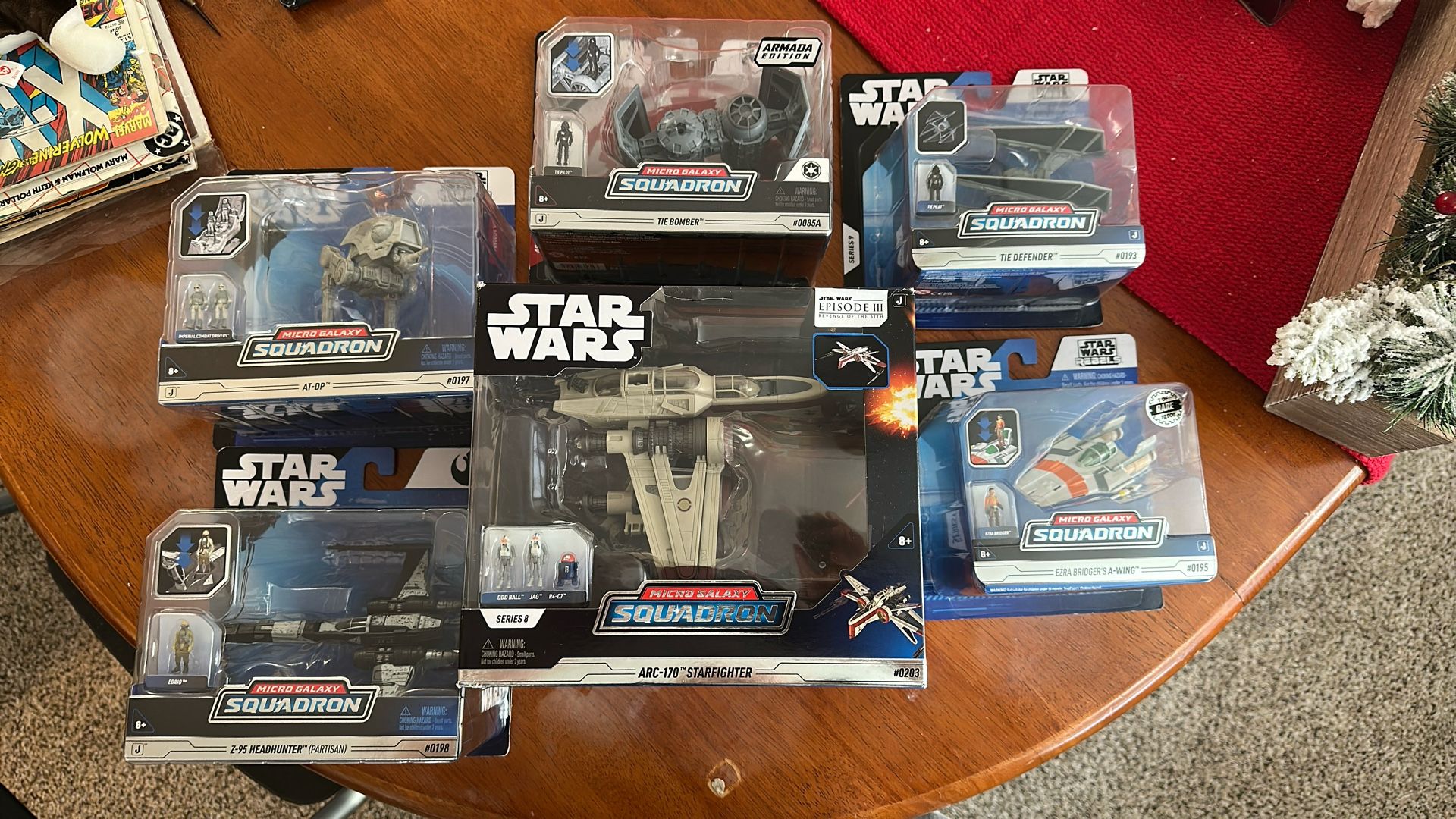 6 vehicles. At-dp, tie bomber, tie defender, ezra bridger’s a-wing, arc-170 starfighter, z-95 headhunter