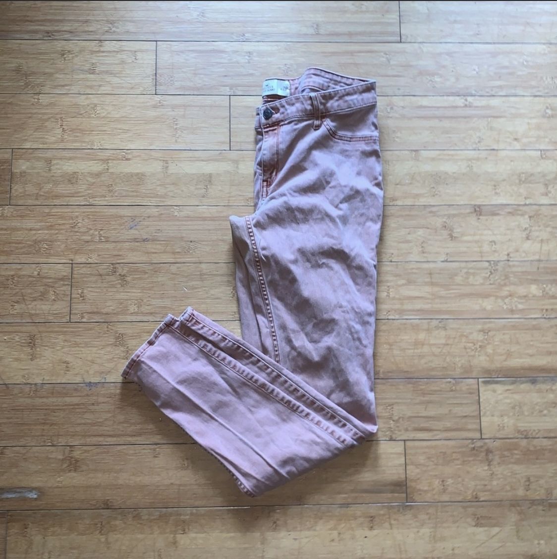 The color is between copper & burnt orange. They are skinny jeans with a felt touch. Only back pockets are functional. Size 9