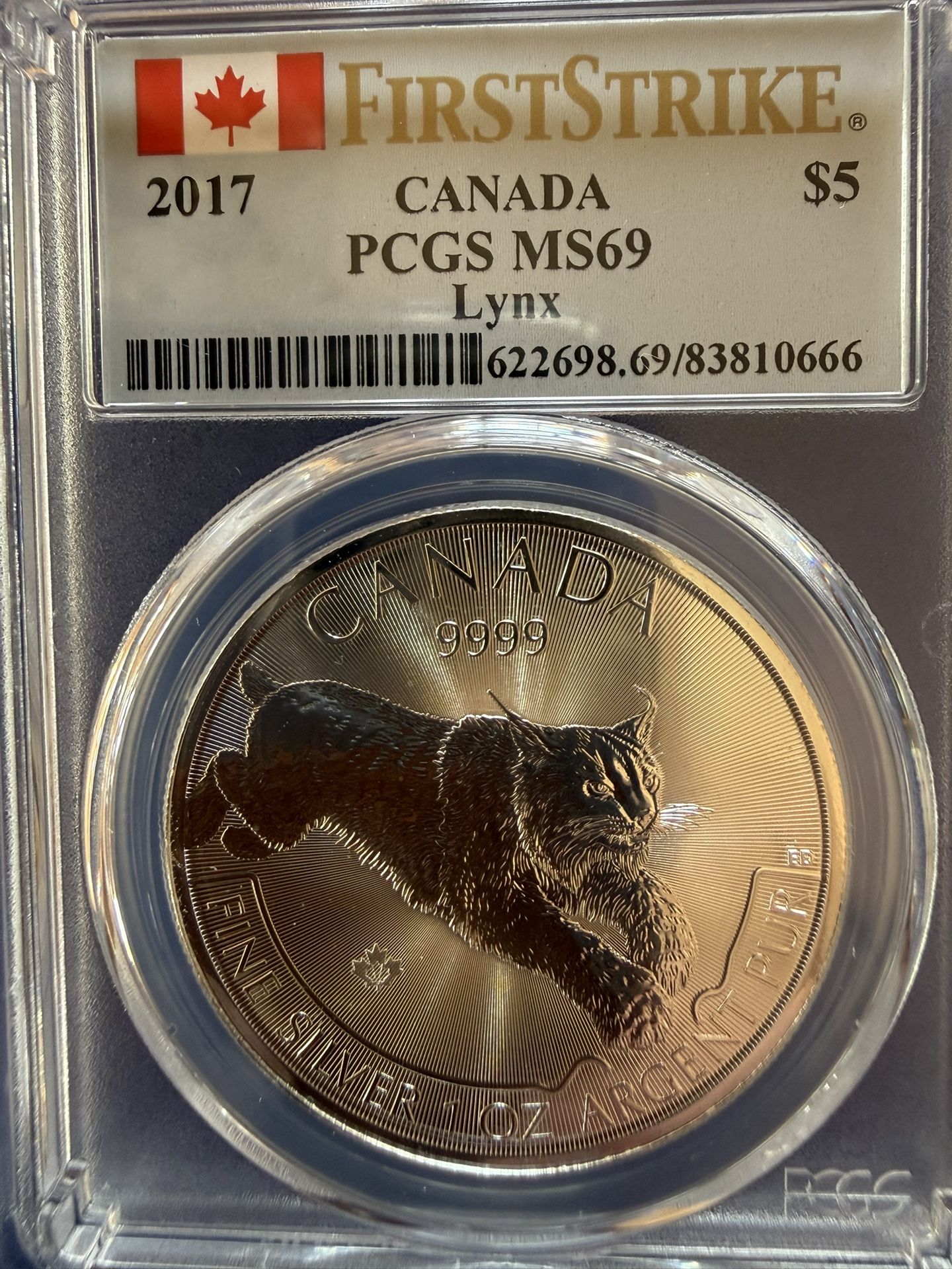 2017 1oz PCGS MS69 CANADA LYNX SILVER COIN