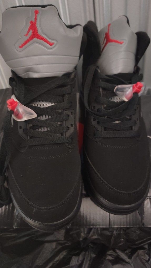 They are black suede sneakers. With the blue gummies sole . High tops they fit well .brand new .