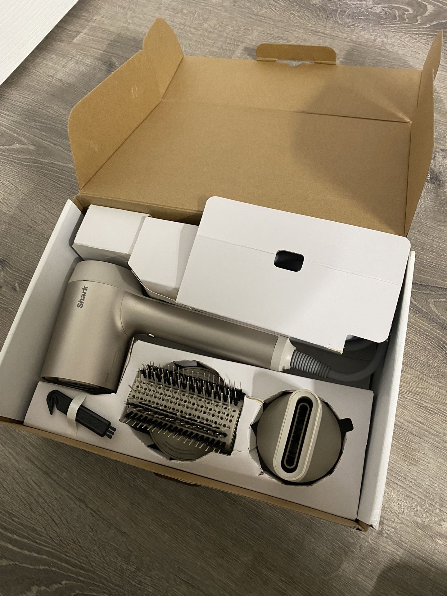 Shark HD112Hair Blow Dryer HyperAIR Ionic Hair Dryer with 2-in-1 Concentrator and Styling Attachments, Auto Presets, Rotatable Hot Air Brush, No Heat Damage, Ionic, In Mint Condition with complete accessories in original box packaging