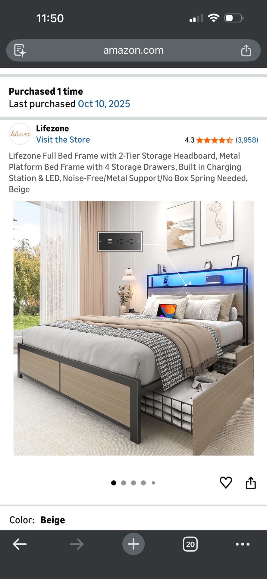Life zone full bed frame. Bought from Amazon a few months back, no longer need it as it was replaced with a bigger bed frame.