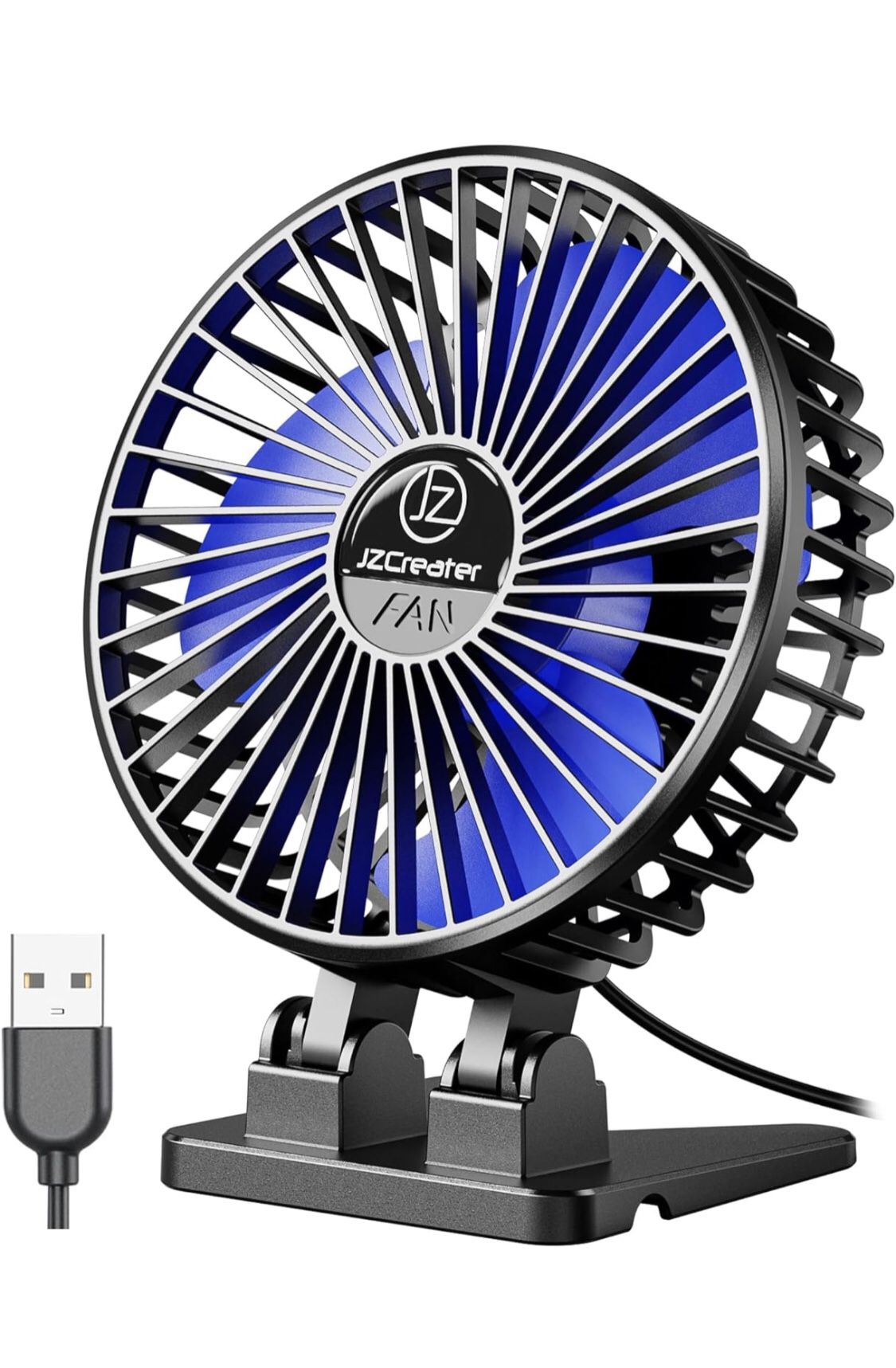About this item 【Exquisite Design】 JZCreater small portable fan is compact and designed in unique modern look, lightweight and space-saving. It weighs about 160g which is very convenient to carry,suitable for home, office, desktop, car, camping, travel use or gift. 【Ultra Quiet】Feature with brush-less quiet motor, which makes the mini fan run quietly yet blow strong airflow. When in use the fans sound is lower than 50db at the high speed. The switch indicator will auto turn off after 30 seconds, power saving, soft wind and bass provide a good sleeping for baby. 【3 speed Adjustable】This small desk fan provides you low/medium/high 3 speed levels to choose. Select the appropriate fan speed by pressing the power button repeatedly. It has a self checking function not found in many of the similar products in which the fan will run for 2 seconds to check during excessive power flow. 【High Compatibility USB-powered】This desk fan comes with a USB which is 3.7ft long and is in sync with all USB ports present on computer, wall charger etc just put it on power hassle free.(Note:This fan has no battery) 【Flexible head with Easy Cleaning】We have taken into account your various needs, providing the most suitable angle wind to quickly cool you down. You can easily remove the front cover for cleaning purpose & fit it back again.