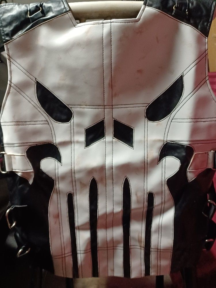 Halloween Special Offer! Biker's Style Real Leather Punisher Tactical Vest