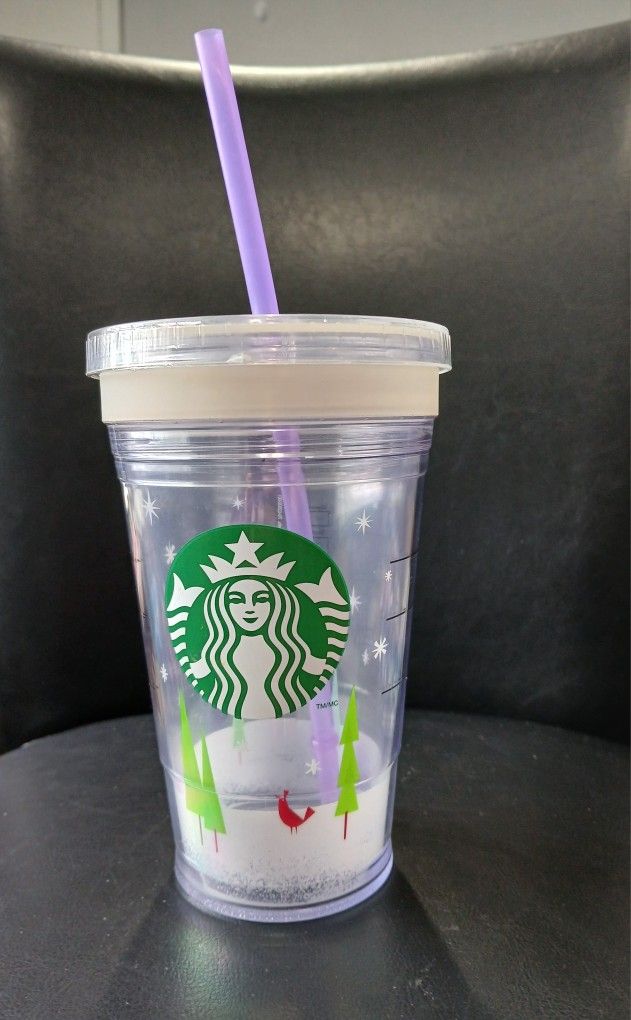 Starbucks Clear Frosted Mug Cup with Straw. 6.5. Inches Tall. Pre-loved. Great condition. Seasonal collectable cup.