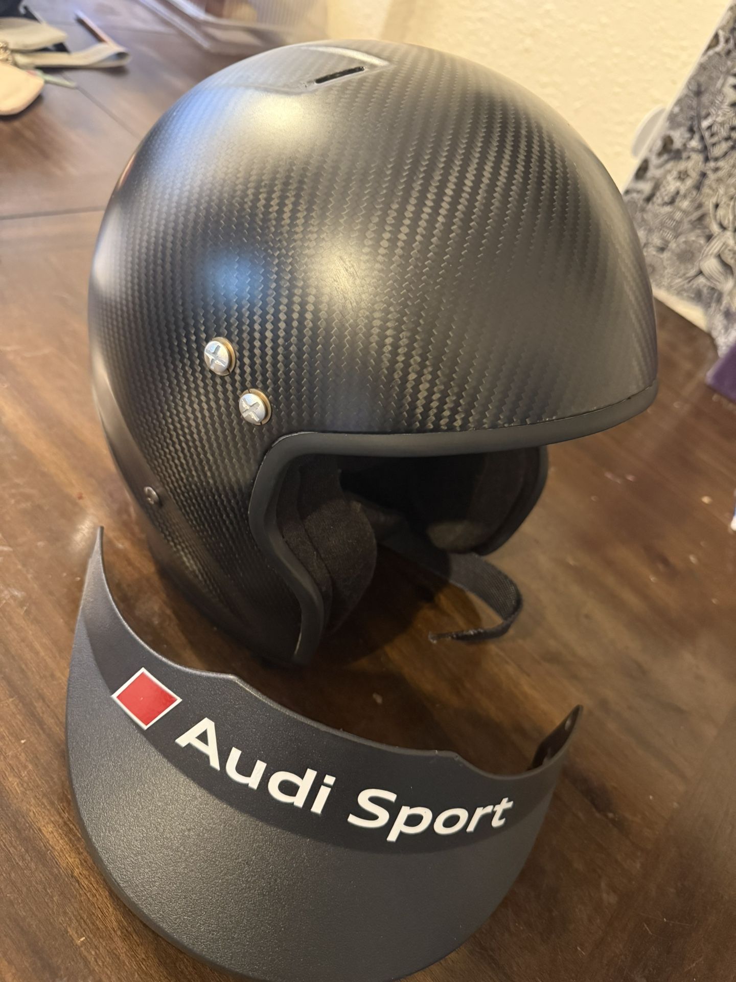 Audi sport Dot carbon Composite As is in photo helmet visor and blue helmet bag $180