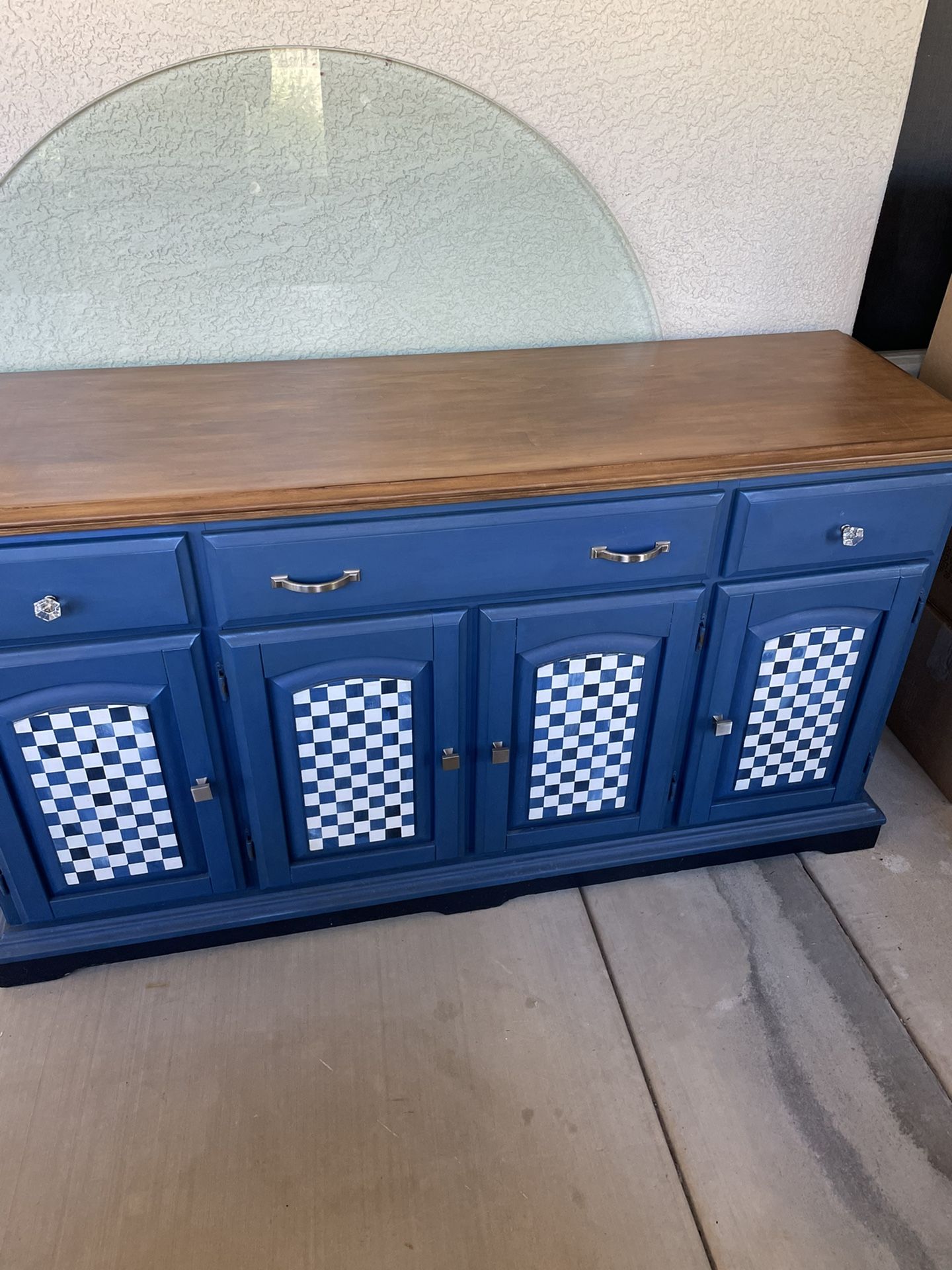 Custom painted Cabinet great for extra dishes or any kitchen items! Length 59” Height 31” Depth 17”