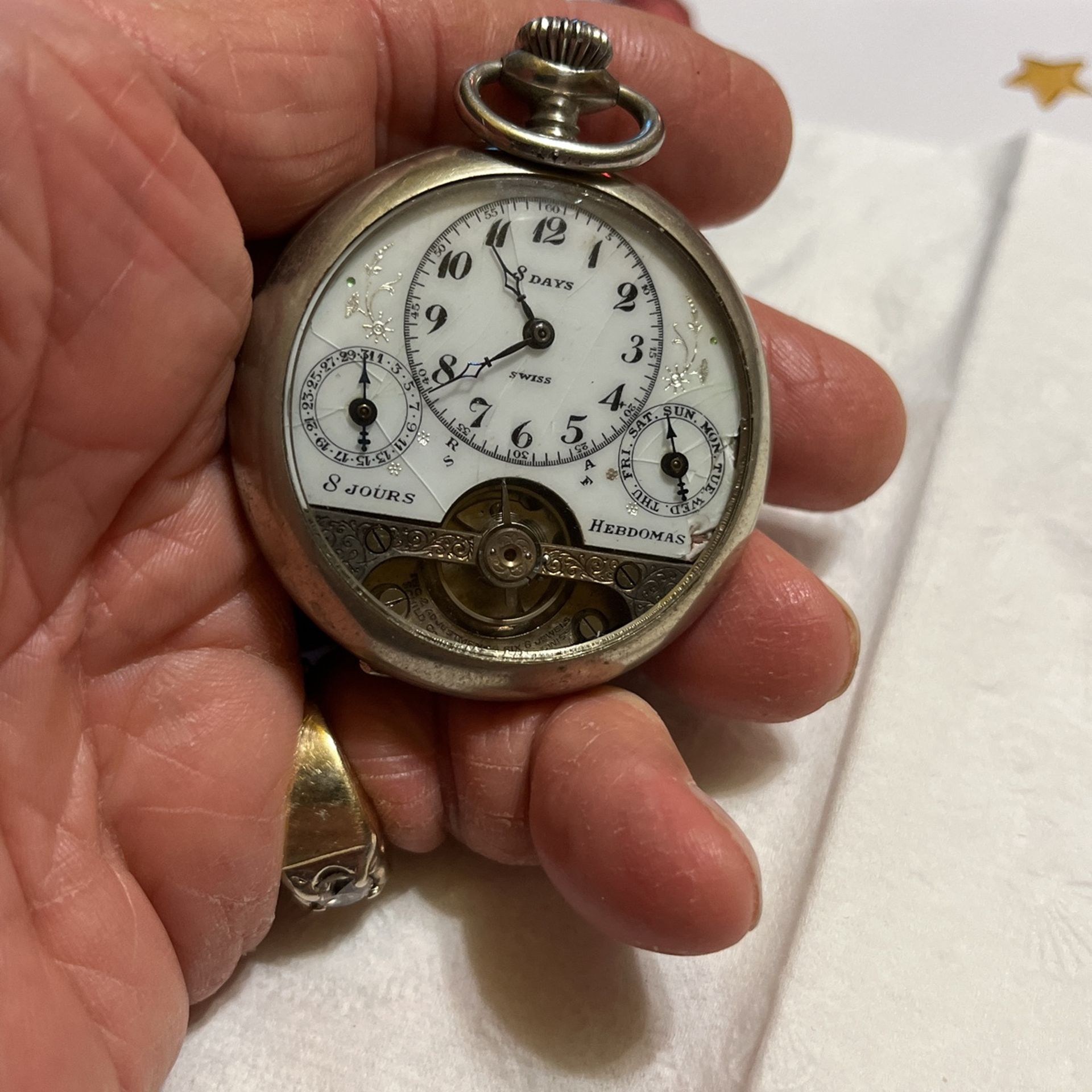 8 Day Hebdomas Day Date Silver Porcelain Inlay Dial