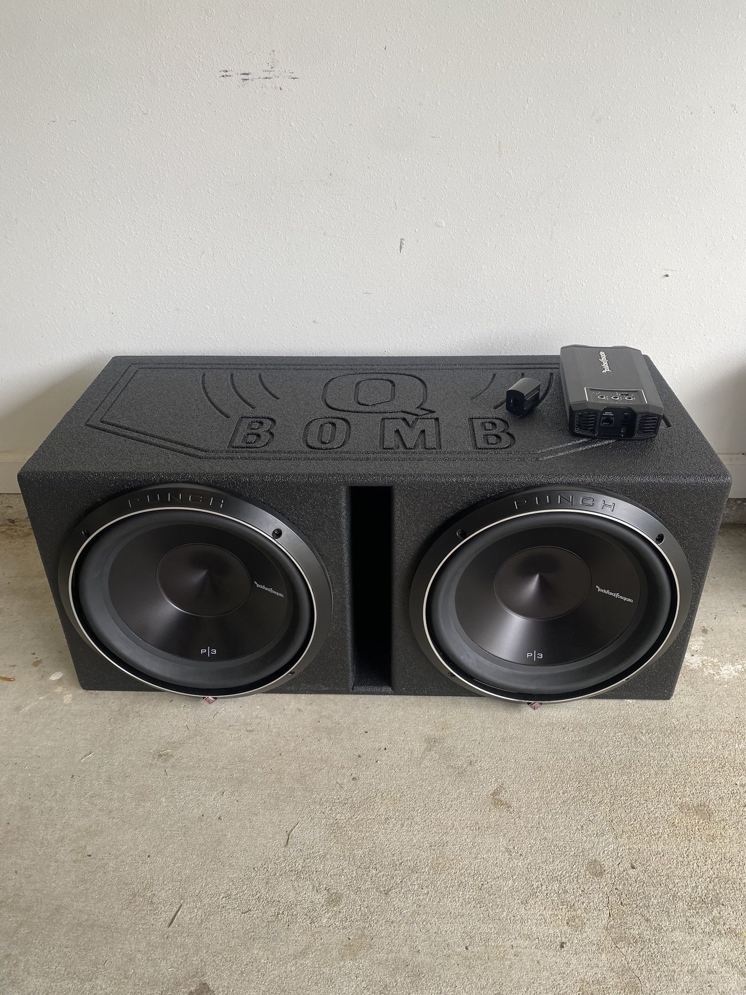2 Rockford Fosgate P3’s QBomb ported box Wiring not included Subs & box are in good condition