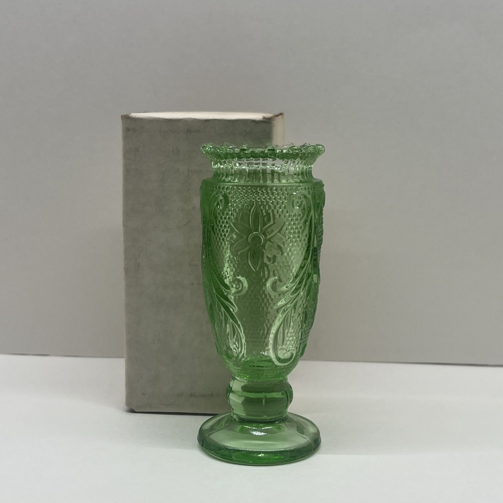 Tiara Exclusives by Indiana Glass “Sandwich” glass 3 3/4” in height Color: Chantilly Green Vintage collector’s item or kitchen table accessory, it is stored away in its box which does come included with it. I have two of these, price is for each one