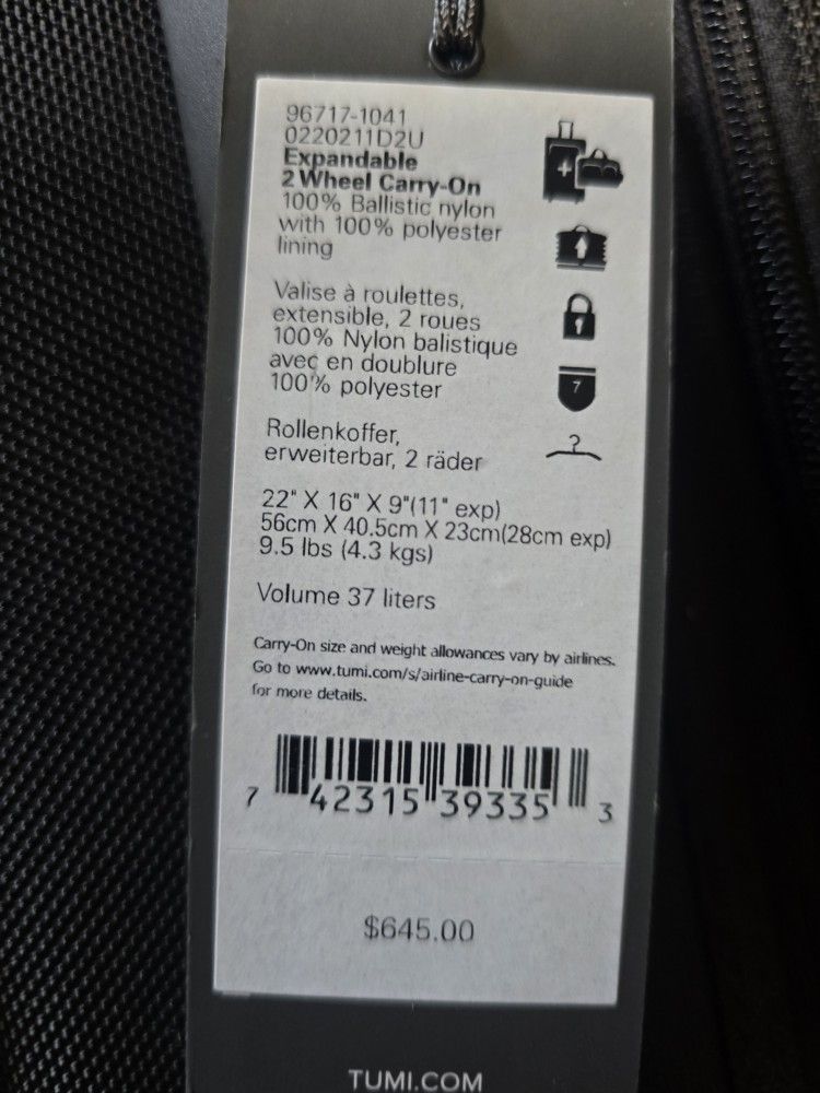 Tumi Luggage Like New Check photo for size on tag Price New is $645 Used on a trip. Meet up in Kapolei. Will not deliver or ship.