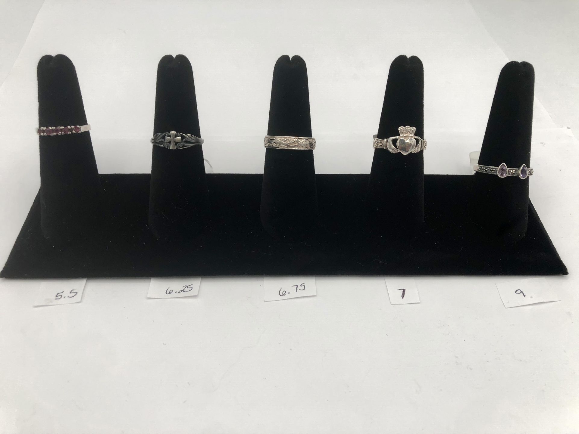 All these rings are sterling silver and have been tested. Sizes are in the pictures. $10 Each