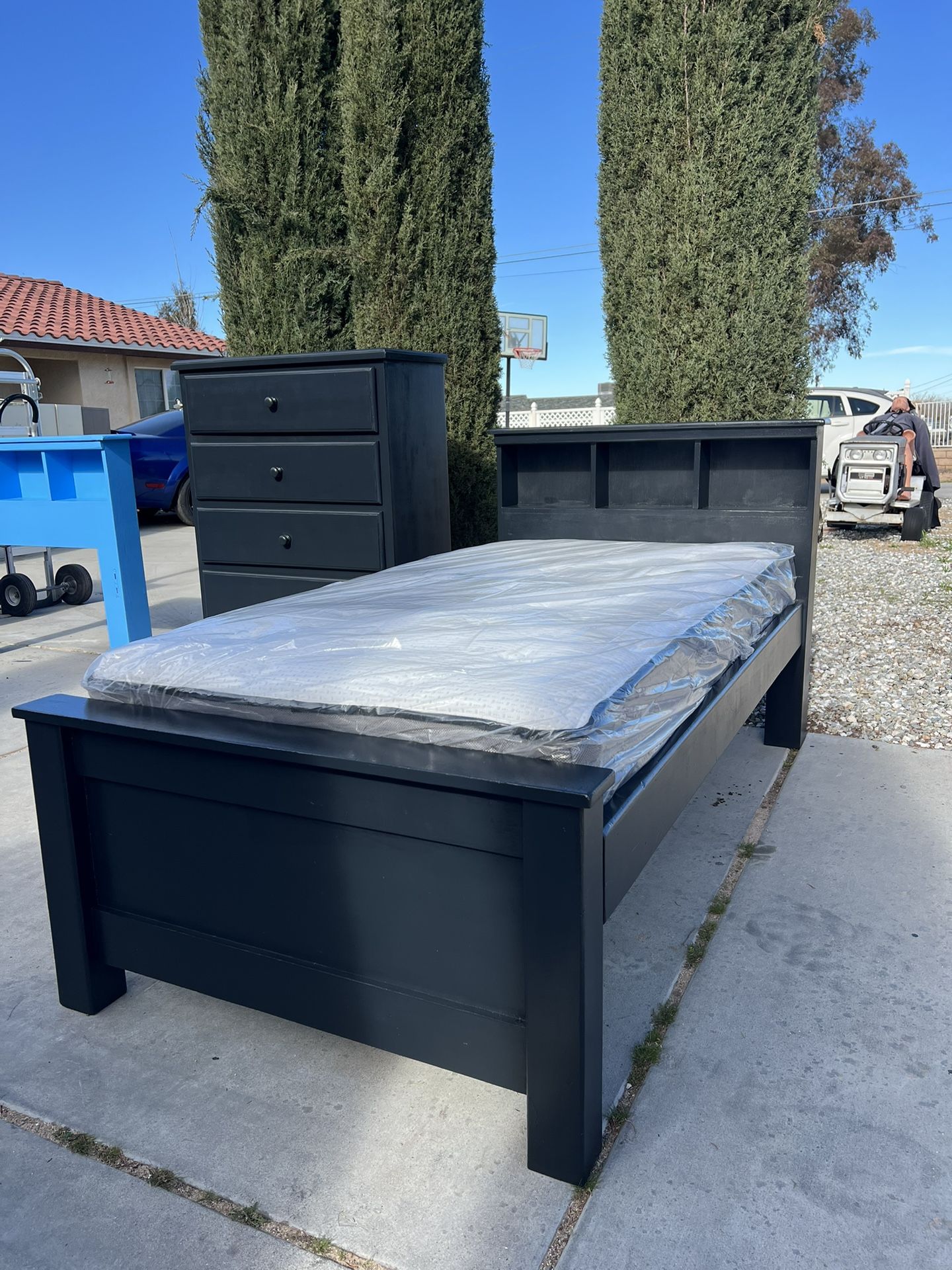 Furniture4you, solid wood, twin bed, black, refurbished, twin mattress, 5 drawer chest, dresser Great condition, solid wood! Can deliver for extra charge Delivery is drop off only