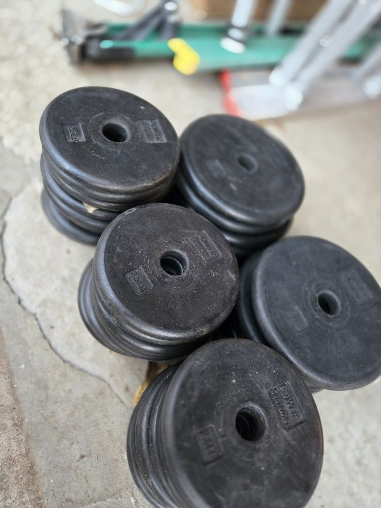A rare find on the used market. Rubber coated 1inch plates. Hardly any companies make these and they go for $2-3 per lb new. Asking $1 per lb I have 28x 2.5lb 16x 5lb I also have other equipment for sale including bars and plates of all types and sizes Delivery available for a fee depending on how far away you are!