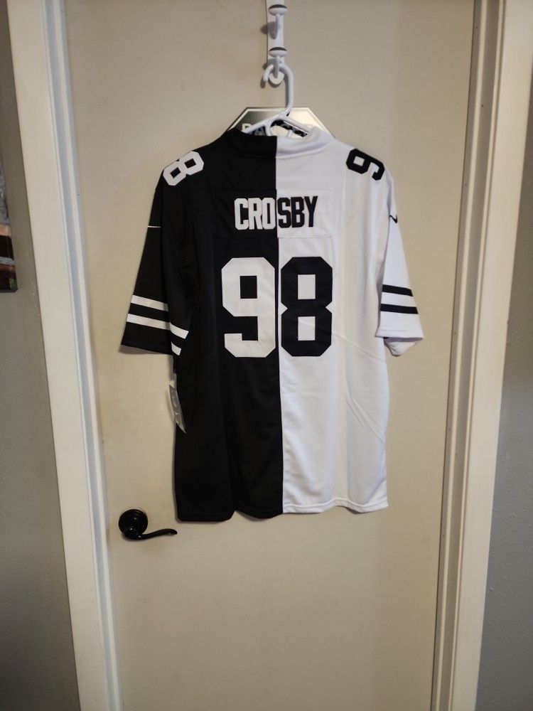 Max Crosby jersey brand new stitched size large Las Vegas Raiders split half white half black firm on price