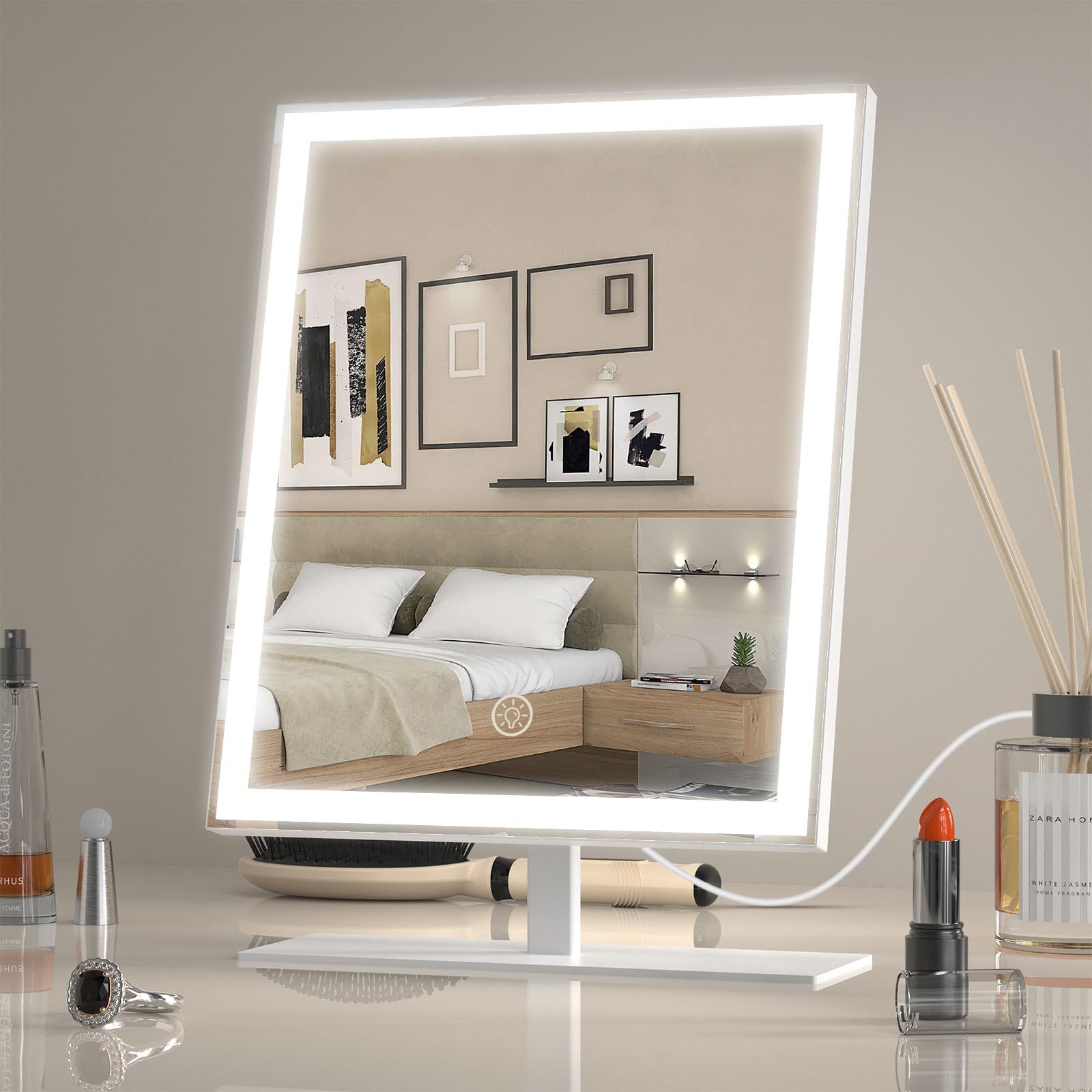AUATZ Vanity Mirror With Lights, Lighted Makeup Mirror With 3 Color Modes, Dimmable Light, Hollywood Vanity Makeup Mirror With Smart Touch Control, Gift For Teen Girl/Women (12in. White)