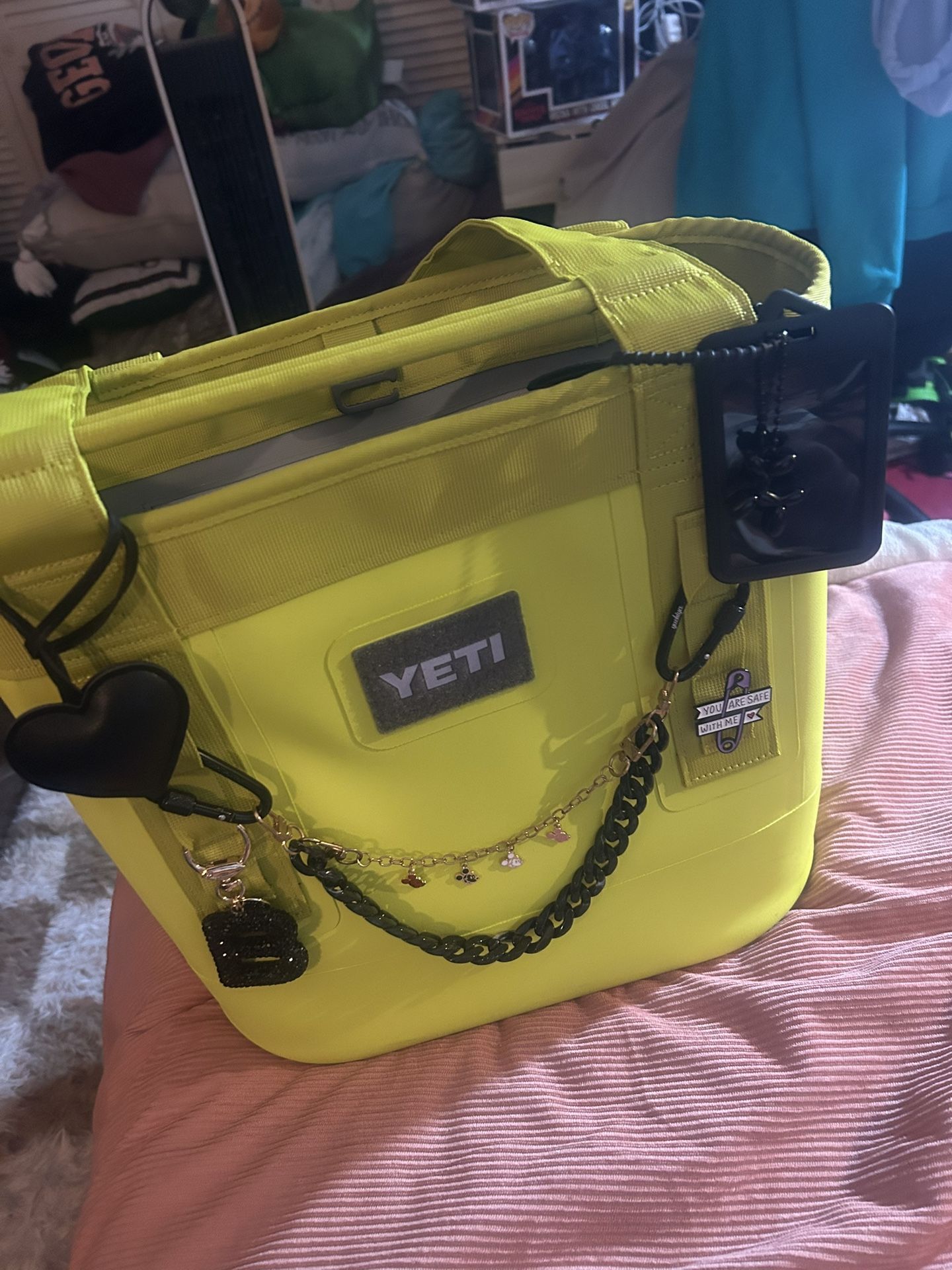 Yeti Camino 20 in firefly yellow. In great used condition. Has a few spots on bottom but nothing a magic eraser wouldn’t fix. Comes with everything pictured. Accessories do not change the price. Yeti Camino 20