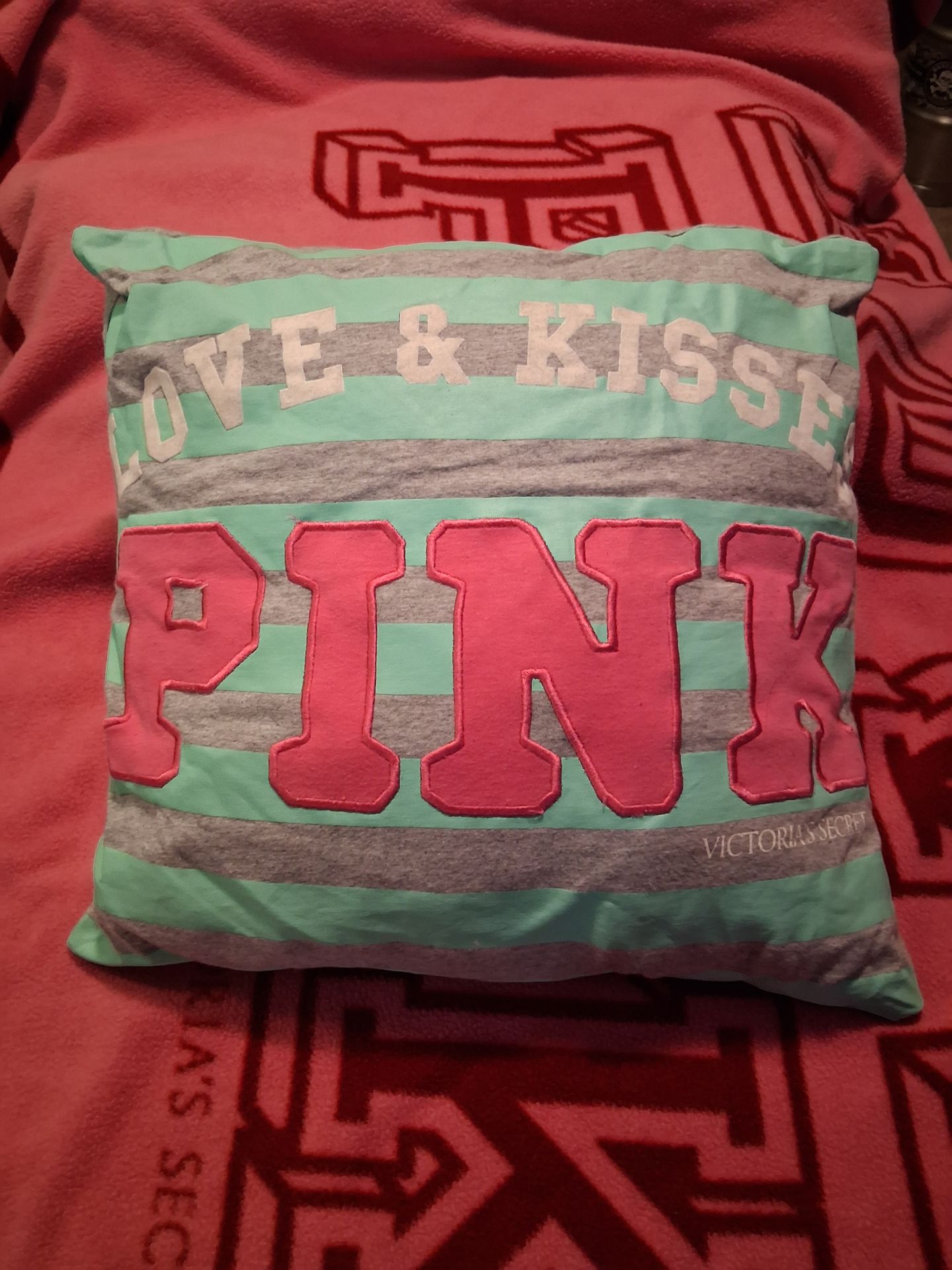 Vintage Victoria's Secret PINK teal and gray Pillow. Original PINK Pillow insert. Excellent condition, small spot on the k that I have not tried to spot treat. Collectors item