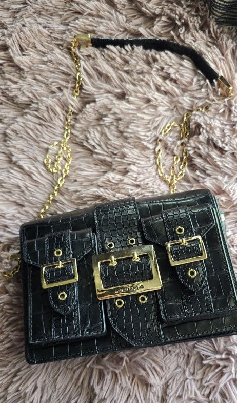 Michael Kors Hayden Crossbody Bag Croc Embossed Leather Chain Strap Gold Purse