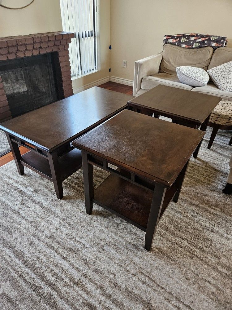 Excellent condition coffee table with two matching end tables, normal wear nothing those little brown markers can't fix! These are made very well they are sturdy and more on the heavier side not flimsy at all. Accepting best offers. Pick up in Santa Fe Springs.
