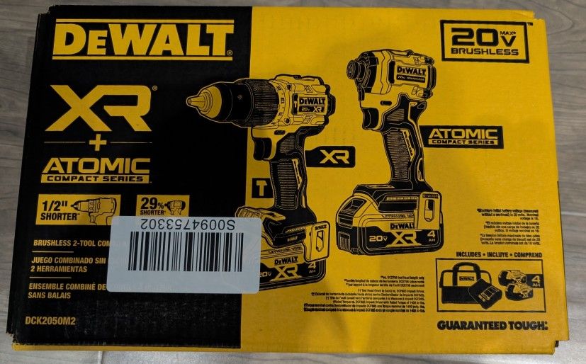 20V MAX XR Hammer Drill & Atomic Impact Driver plus two 4AH XR Batteries & Charger BRAND NEW still sealed in box - DCD805 20V MAX XR Hammer Drill - DCF850 Atomic Impact Driver - two 4AH XR Batteries - Charger