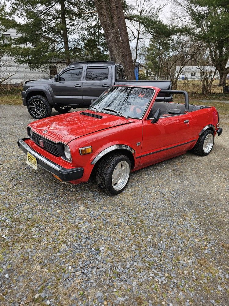 Here we have a topless 1978 honda civic 120k miles 4speed . I've owed it for a while now and it is a really fun car .. please note car has no top so must be kept under a roof ... willing to trade just send me offers . Have no time to dedicate to the car never been to any sort of show its definitely a head turner. Only problem it has is that battery does not hold a charge. I have no time to dedicate time to working on it. Selling it as is . I can put a jump box on so u can hear it and drive it somewhat .