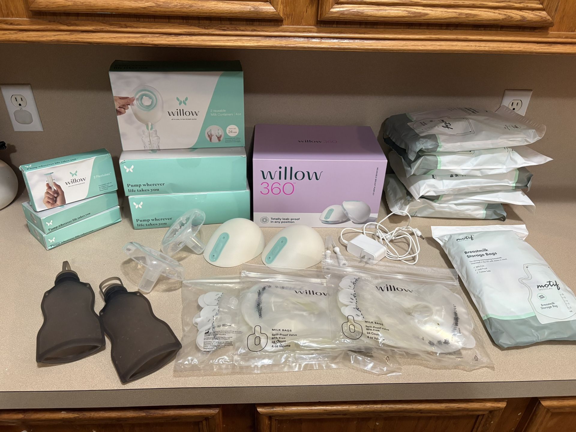 Willow 360 breast pump bundle $500 ($890+ value) -Willow 360 (bought new less than a year ago, includes original charging cord, cleaning brushes and instructions - 3 sets of replacement parts NEW (flex tubes and milk containers- for pumping directly into reusable containers) - 1 set of barley used containers for pumping directly into milk bags - 60 milk bags (pumps directly into bag) -580 Motif milk storage bags - 2 reusable storage silicone containers Pick up in Beach City 77523