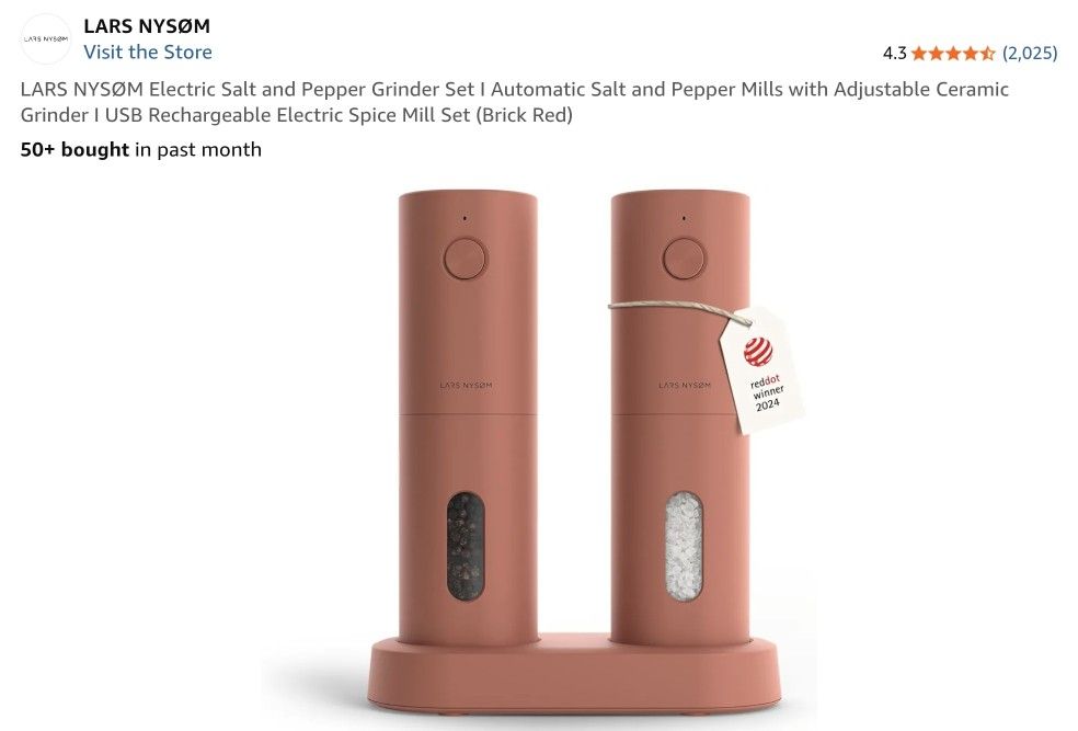 New set in box - Pick up near George Washington high school- Denver 80224 LARS NYSØM Electric Salt and Pepper Grinder Set I Automatic Salt and Pepper Mills with Adjustable Ceramic Grinder I USB Rechargeable Electric Spice Mill Set (Brick Red)