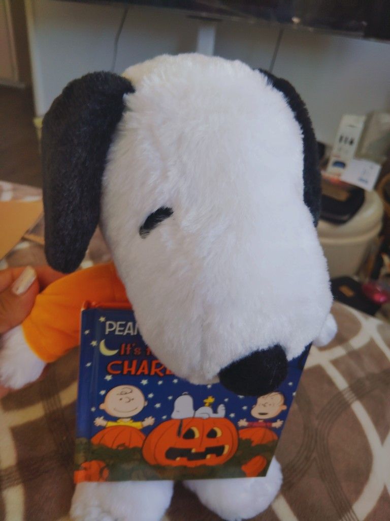 New Snoopy with attached Halloween book. 12 in height. Tags are still attached.