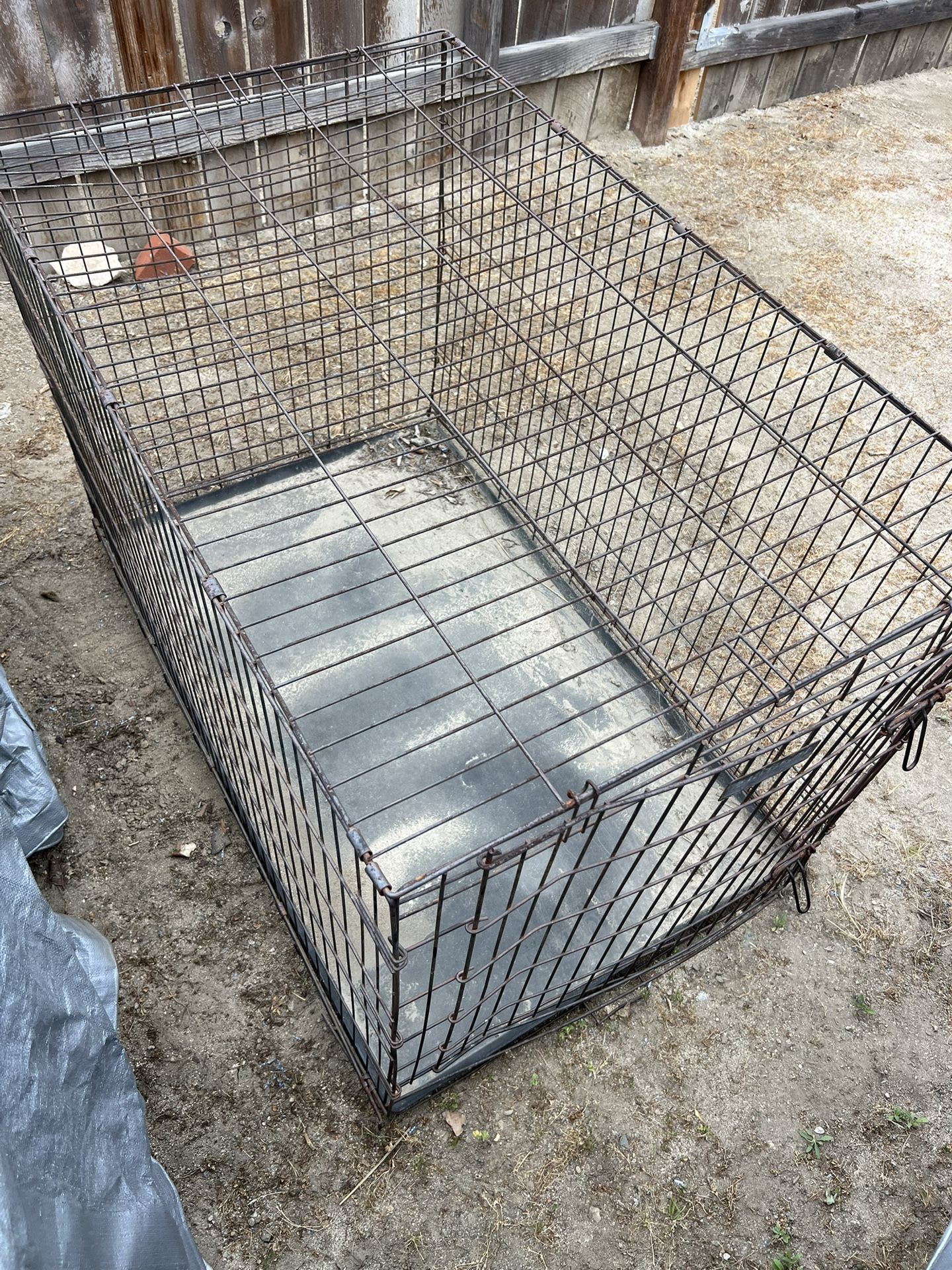 FOR SALE: Large Used Dog Cage – 48”x32”x29” – $40 Need a solid dog crate without breaking the bank? This large dog cage gets the job done! • Size: 48” long x 32” tall x 29” wide – perfect for large breeds • Includes: Durable plastic tub bottom • Condition: Used and has been kept outside, so it’s not in perfect shape – but fully functional and reliable for its purpose • Price: $40 or best offer – Cash only • Pickup only: No delivery available – First come, first served Great deal if you just need a temporary or outdoor crate! Message me if interested.