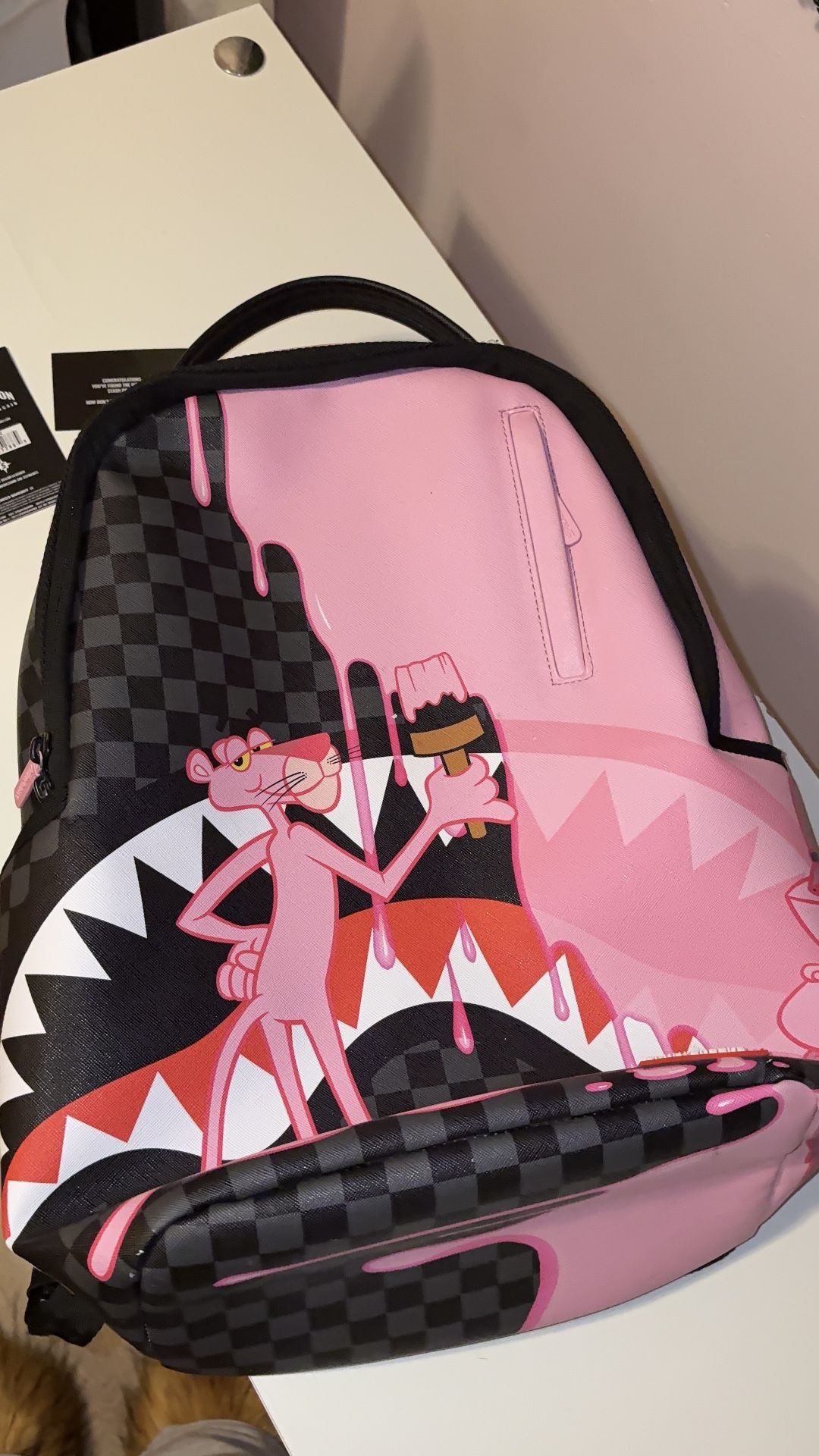Authentic Sprayground Pink Panther backpack in great condition. Clean inside and out with lots of storage space. Minor wear from normal use (shown in photos), nothing major. • Brand: Sprayground • Design: Pink Panther • Condition: Gently used Pickup available. Message me if interested!