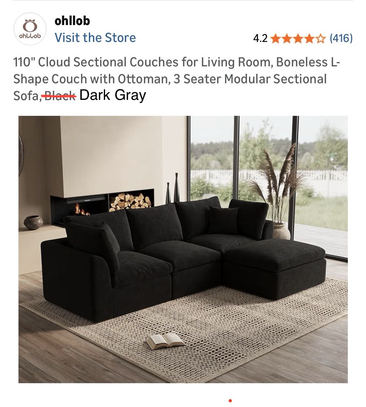 Boneless Sofa. Dark gray. Brand new. In box. Took one section out of box to see it. Didn’t like it. I paid full price. My loss, your gain. Big discount. A boneless sofa is a trendy, minimalist couch made entirely of high-density foam and fabric, with absolutely no traditional wood or metal frame, springs, or legs. These low-to-the-ground, modular couches are designed for casual lounging, offering a "sink-in" experience often delivered in vacuum-sealed packages.