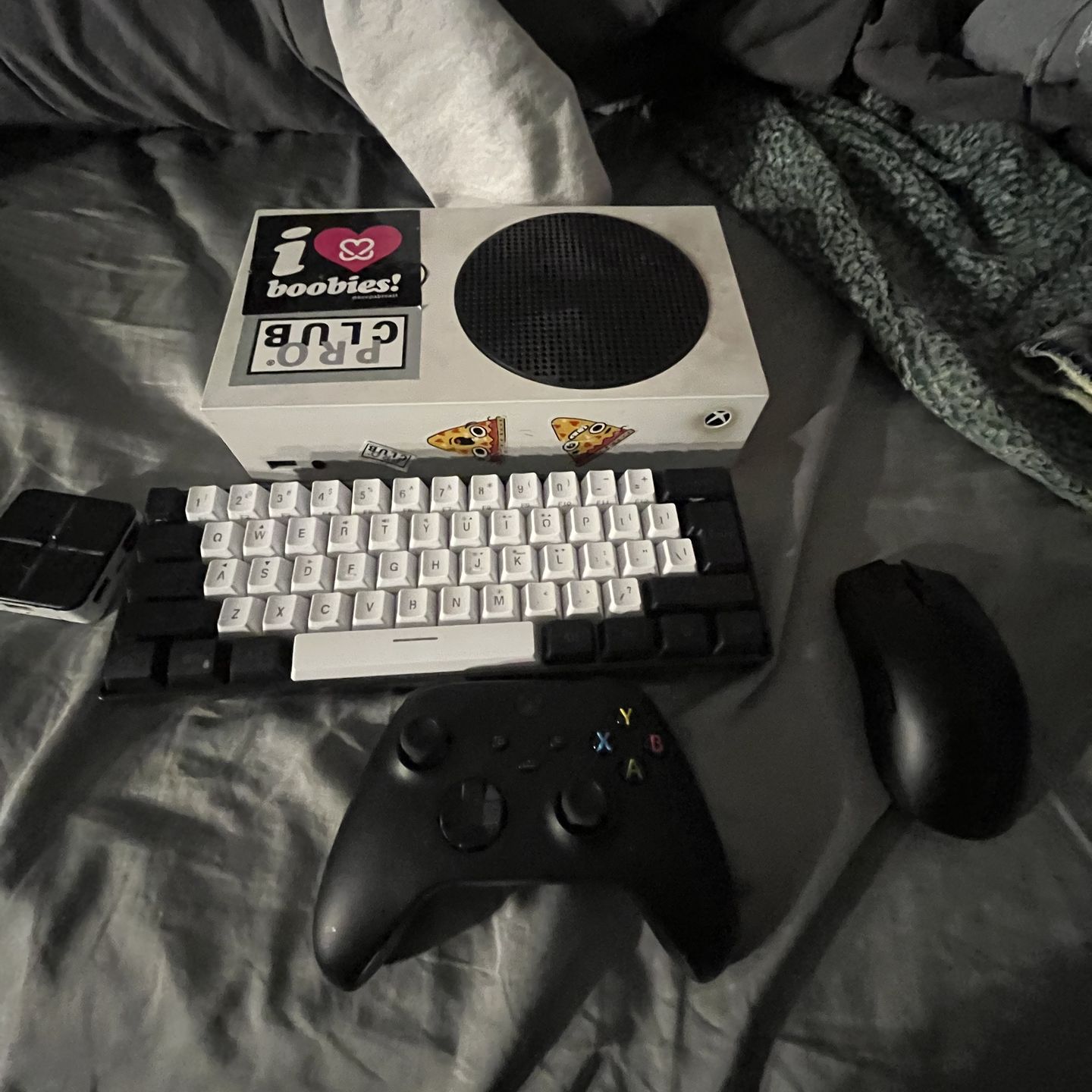 Selling my Xbox series s basically new bottom parts a little lifted because I took it apart to clean the van which was very dirty xim matrix also new no problems the mouse is new as well as the keyboard 500 obo Xbox retail=400 Xim matrix retail=150 Mouse retail=160 Controller=60 Keyboard retail=30 Alexa=100 Overall=900