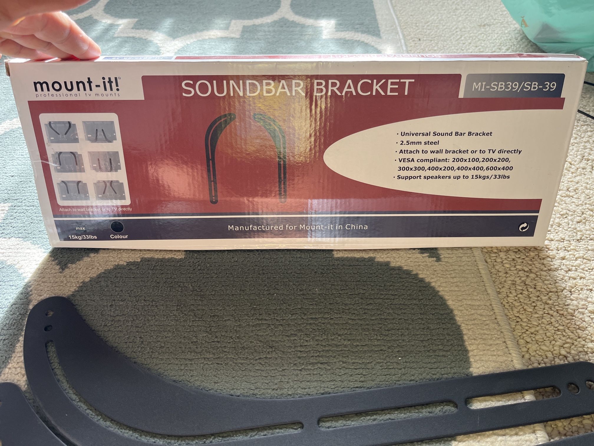 Universal sound bar bracket, VESA compliant, supports up to 15kg. Open box $15 Sealed box $20