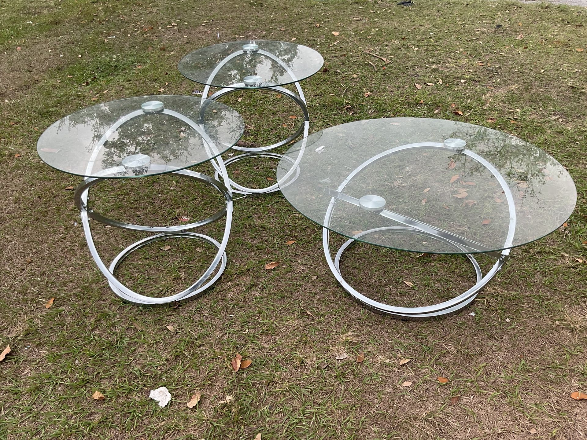 Dinna Round Coffee Tables with Metal Frame and Tempered Glass Top Center $150 All 3 $60 For Single