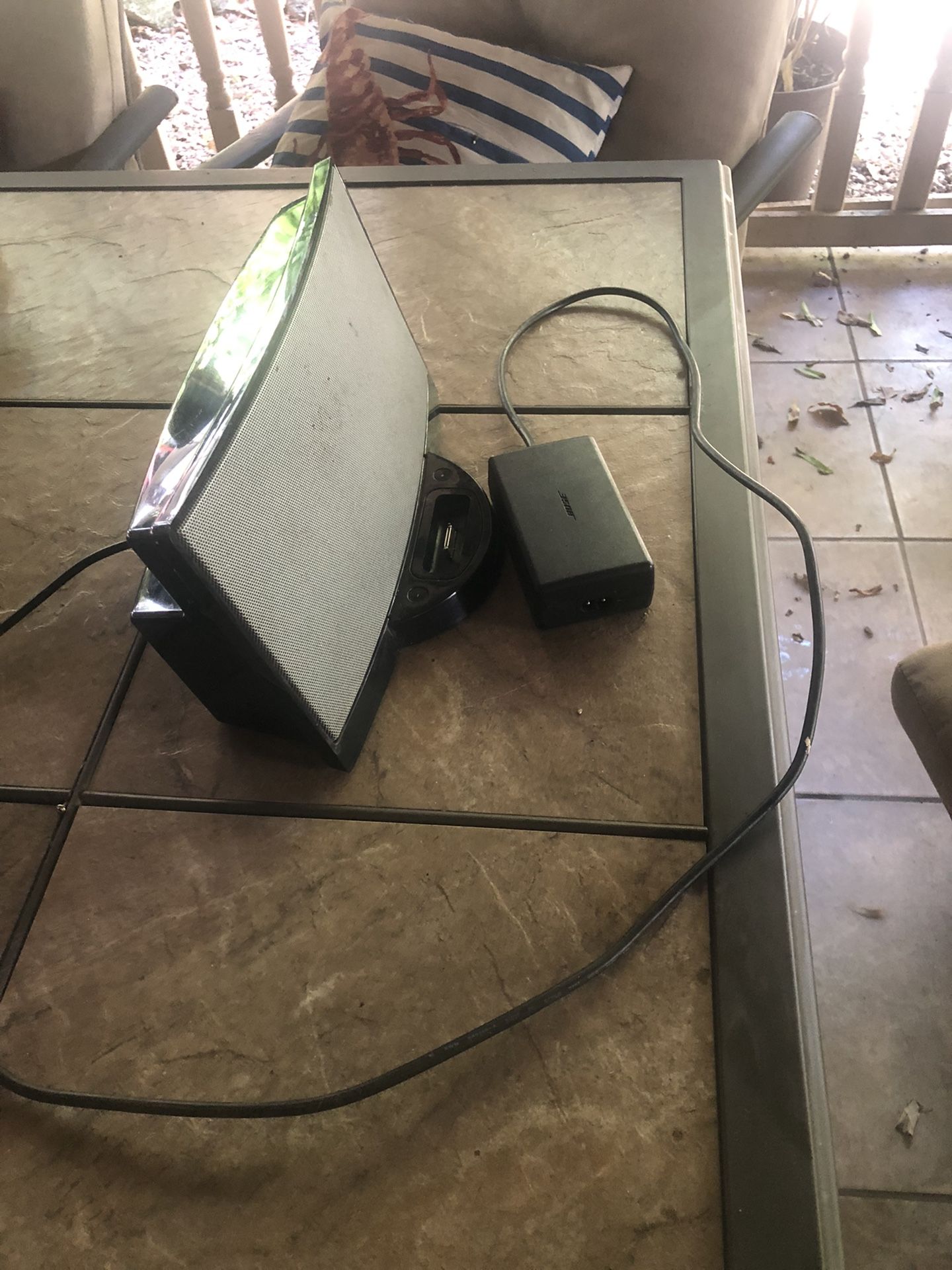 Brand BoseMissing part of the power cord . Easily found on eBay and an adapter to make this Bluetooth or up to date apple connectors . Amazing sounds came out of this speaker .