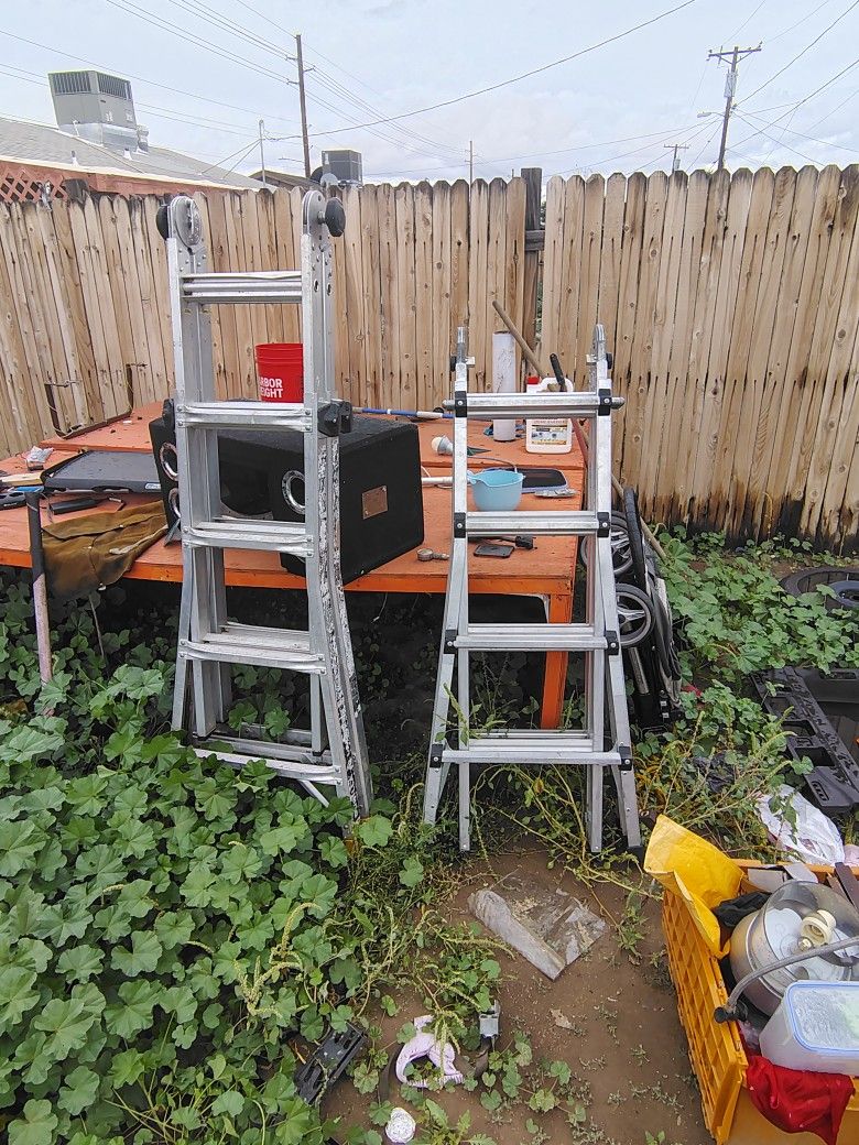 I have two telescoping foldable multi-,,position ladders. 22ft (,Gorilla Ladders-retails 350 )and 18 ft (Little Giant- retails 700) I'll let go of the Gorilla for 150, the LG for 250. Both for 375.