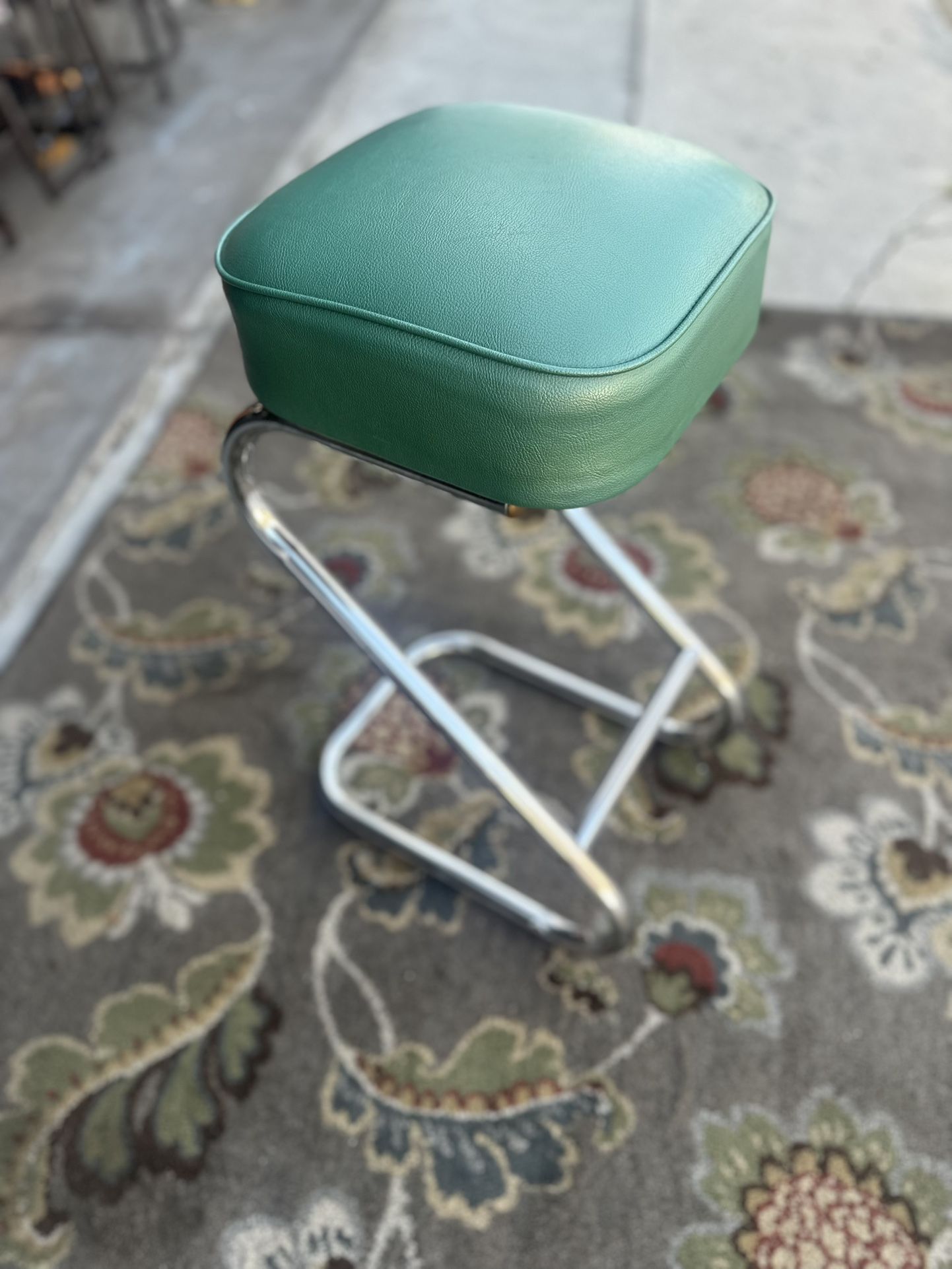 Vintage Mid-Century, Modern Chrome Plated Tubular Barstool -Green 26”tall Excellent condition! Perfect! $150 exact cash Local pick up only-Redlands, Ca.