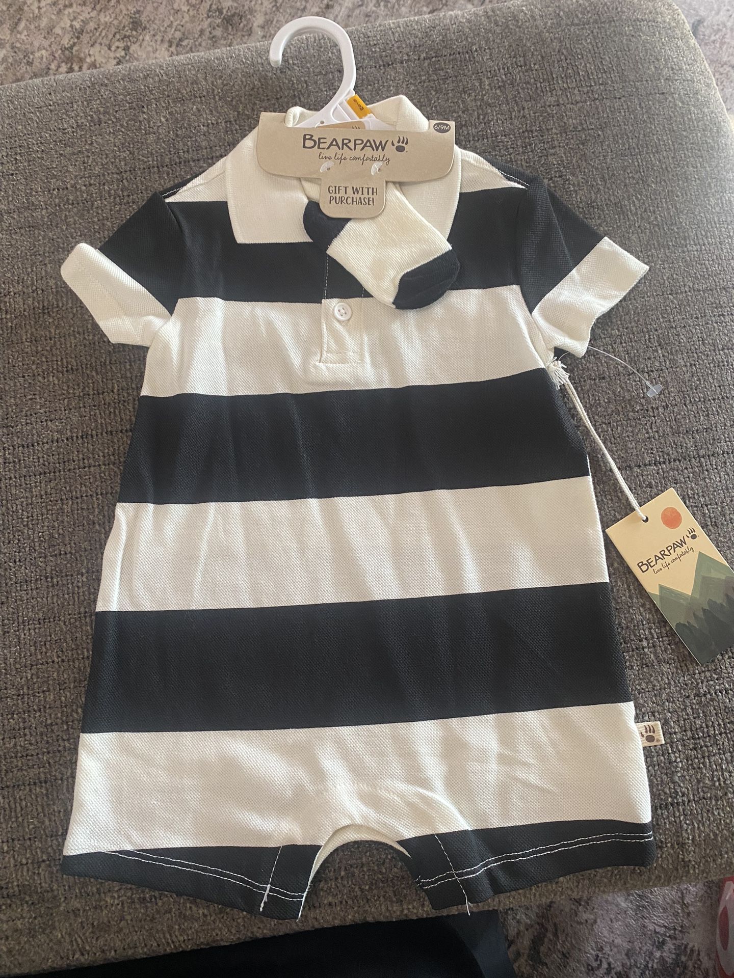 NEW Boys Black And White Shorts Romper And Socks Size 6/9 Months By Bear Paw #1