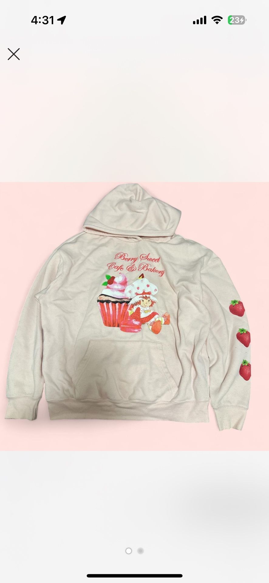 #kawaii #strawberry #shortcake #strawberries #berry The hoodie has black markings on a sleeve.
