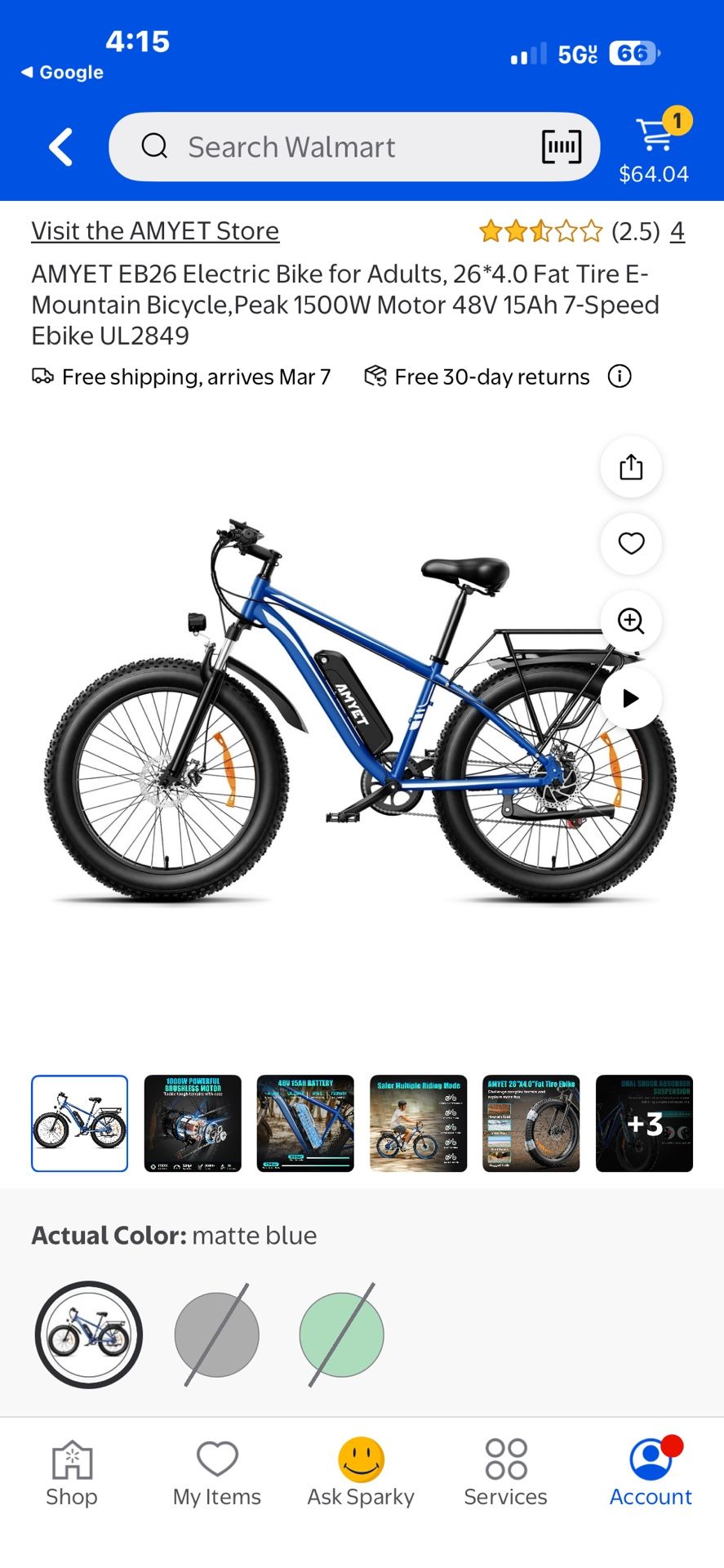 AMYET EB26 Electric Bike for Adults, 26*4.0 Fat Tire E-Mountain Bicycle, Peak 1500W Motor 48V 15Ah 7-Speed