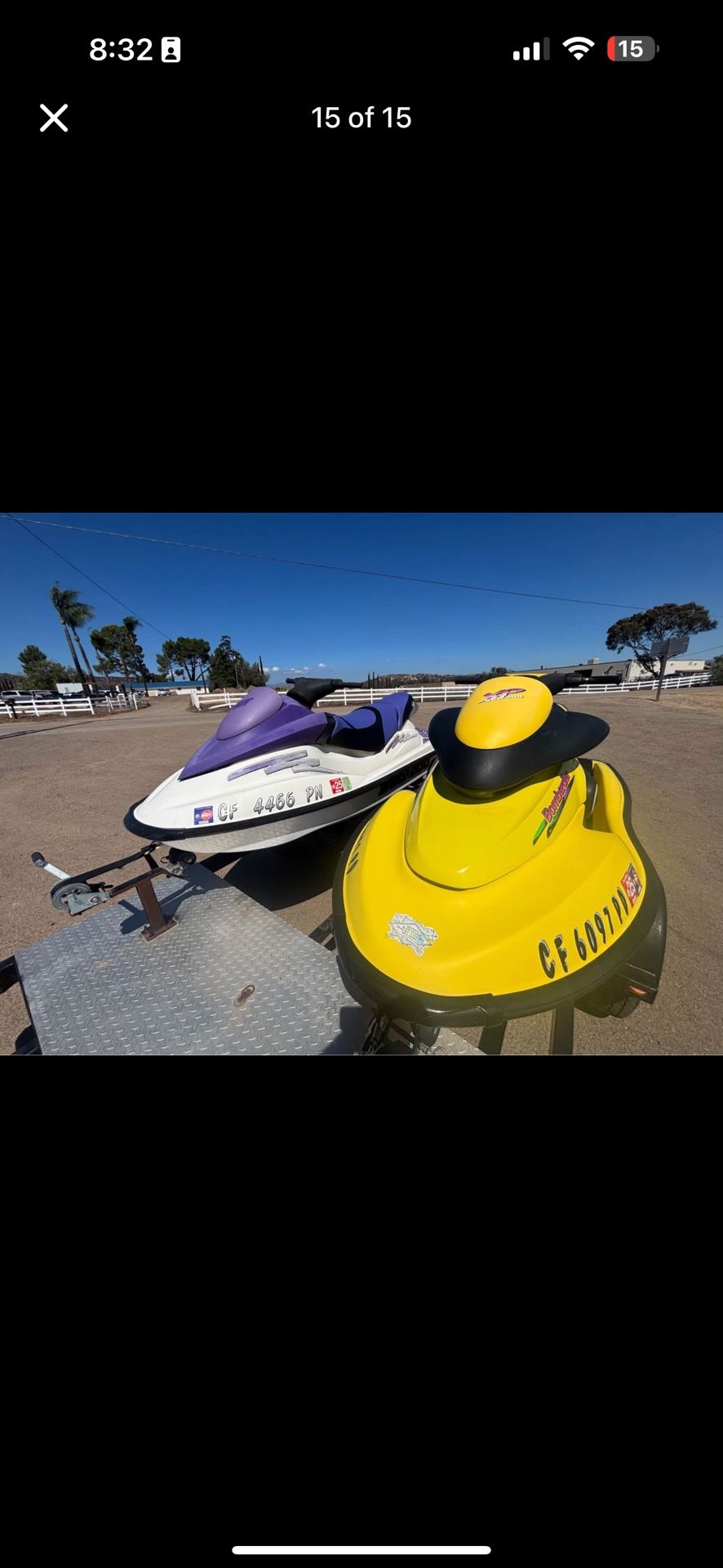 2003 Seadoo GTI And 1997 Seadoo XP W Triple Jetski Trailer Excellent Condition Cheap The skis were always covered and show well for their age. Very well maintained over the years, and had their last service a year and a half ago. The 2003 GTI runs strong is turnkey and ready to hit the water. Unfortunately the owner passed away and they have been sitting unused since serviced. The 1997 runs good on starting fluid, but will need the carb cleaned to be ready to go again. Comes with a super unique 3 jetski trailer that has bunks in front of the two skis for a third stand up jetski. Current registration and three titles for everything.