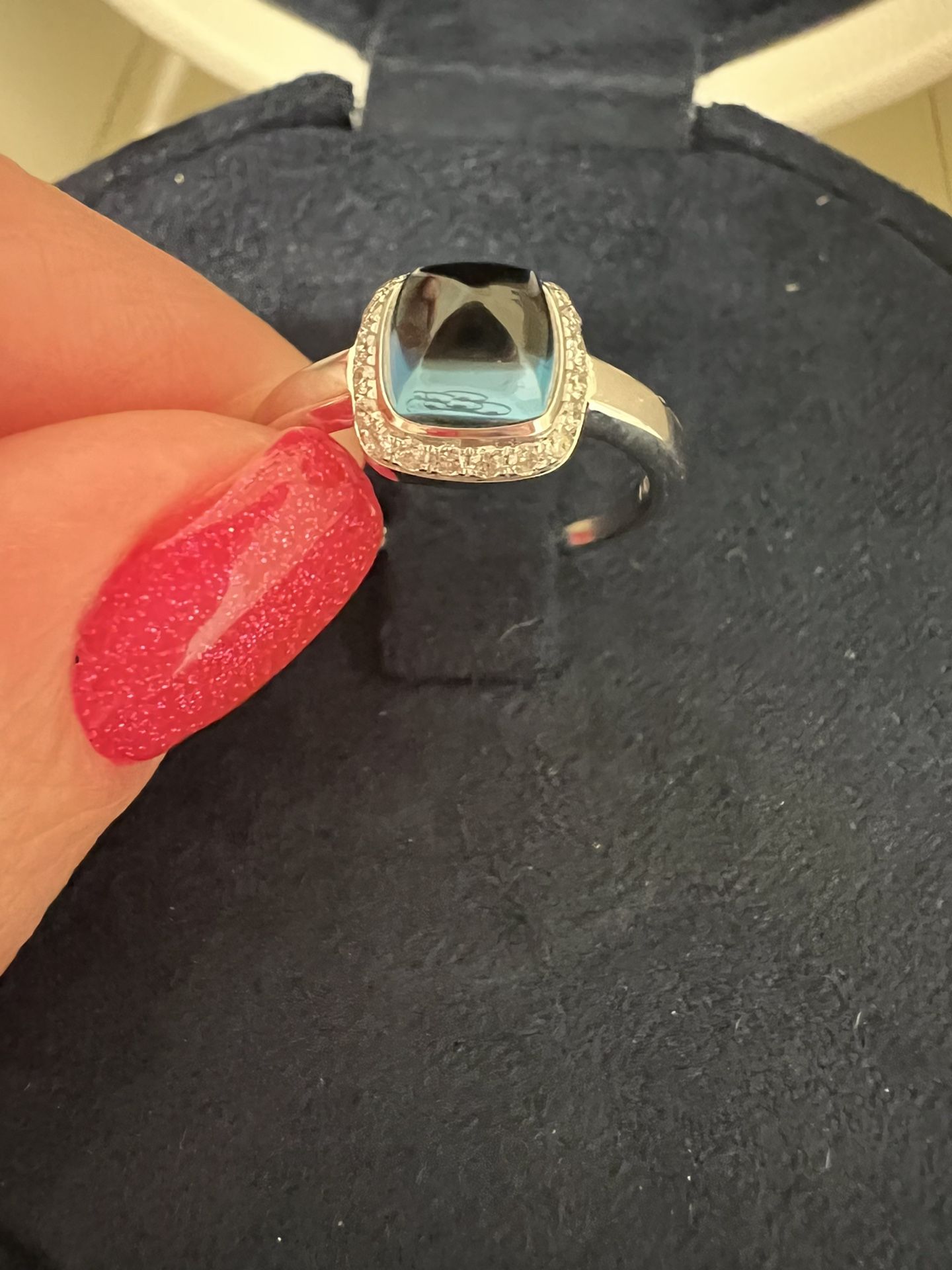 New $ 1950. Fred of Paris Pain De Sucre Gold Diamond 0.15ct Topaz Ring Sz 6. Fred of Paris 18k White Gold Ring features a smooth square London Blue Topaz adorned with diamonds. size is 6. Decoration Size is 0.34". Weight is 3.64g. Very beautiful π€©ππΊ