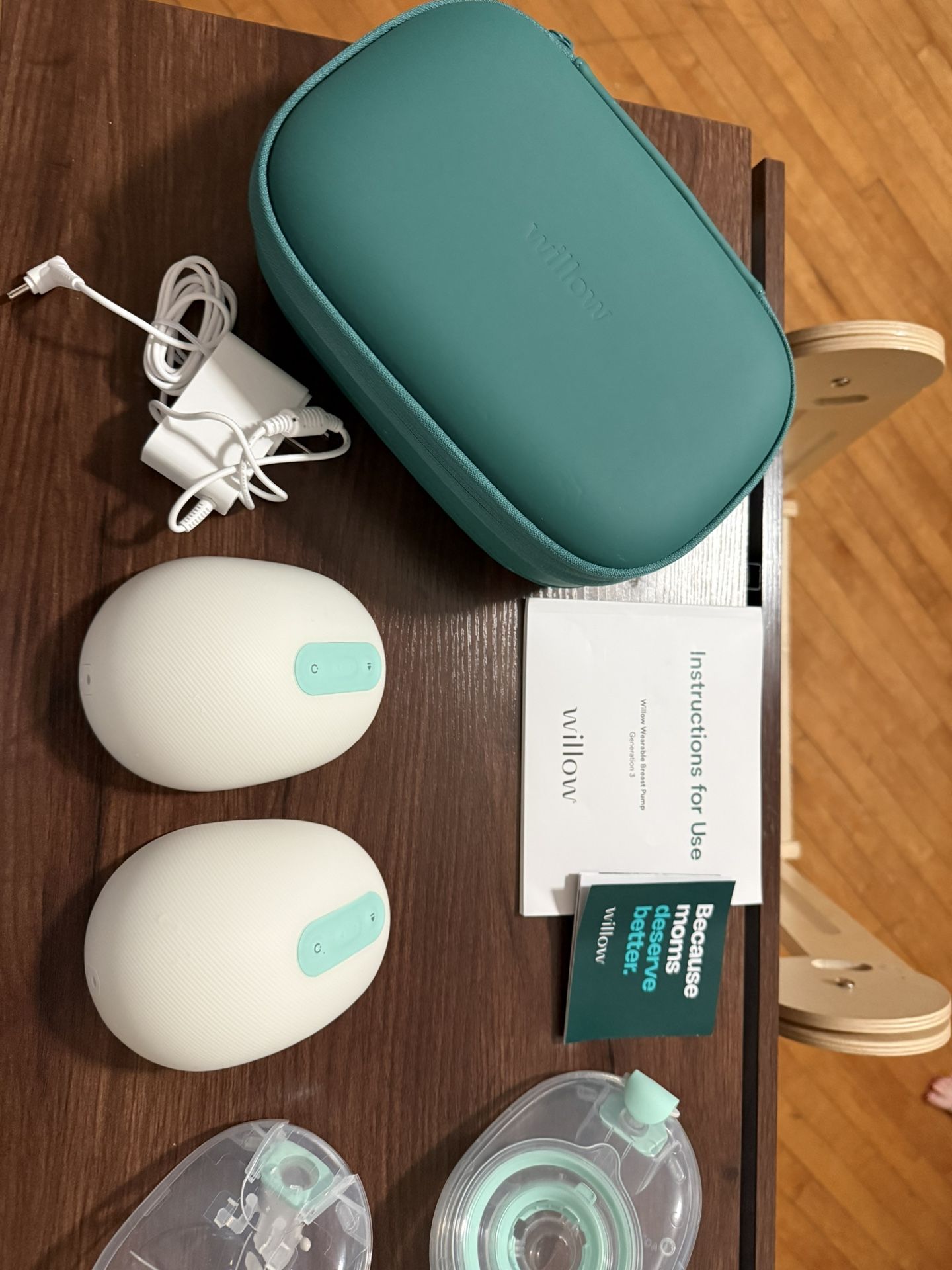 *** Home Pickup Only*** Used less than five times, very good condition. Pairs with Willow App. 2 Willow 360 Wearable Pump 24mm Flanges + Charger 2 Willow 360 Containers 24mm Flanges (Container for use with breast pump) Travel Case - Teal 38 Storage Bags