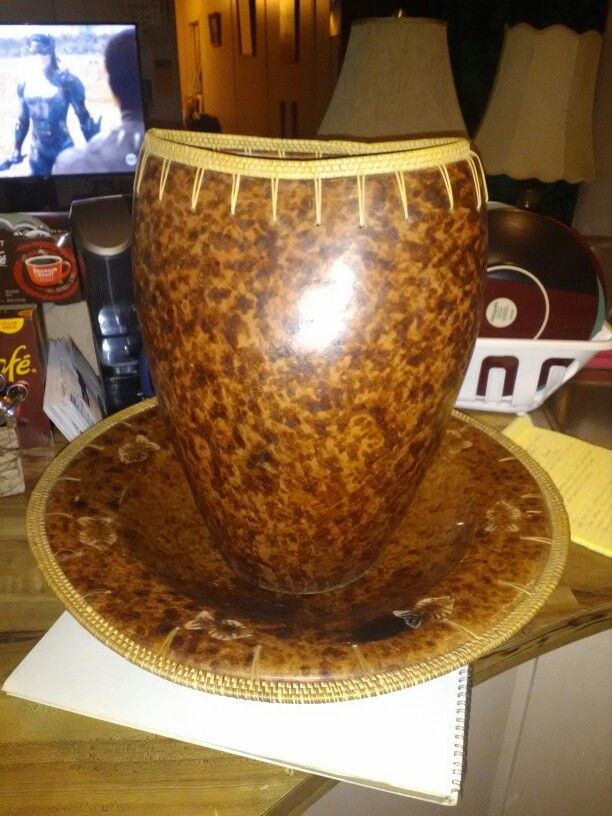Beautiful large leather bound bowl and pitcher. 20 in. Round bowl and 16 in. Tall by 12 in. Wide pitcher.