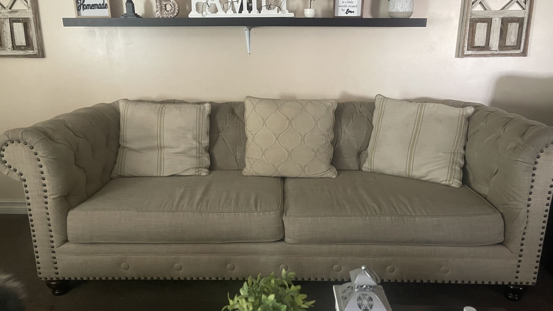 Selling 2 couches , missing some buttons , one of the pillows is ripped, some stains, they need to be cleaned.