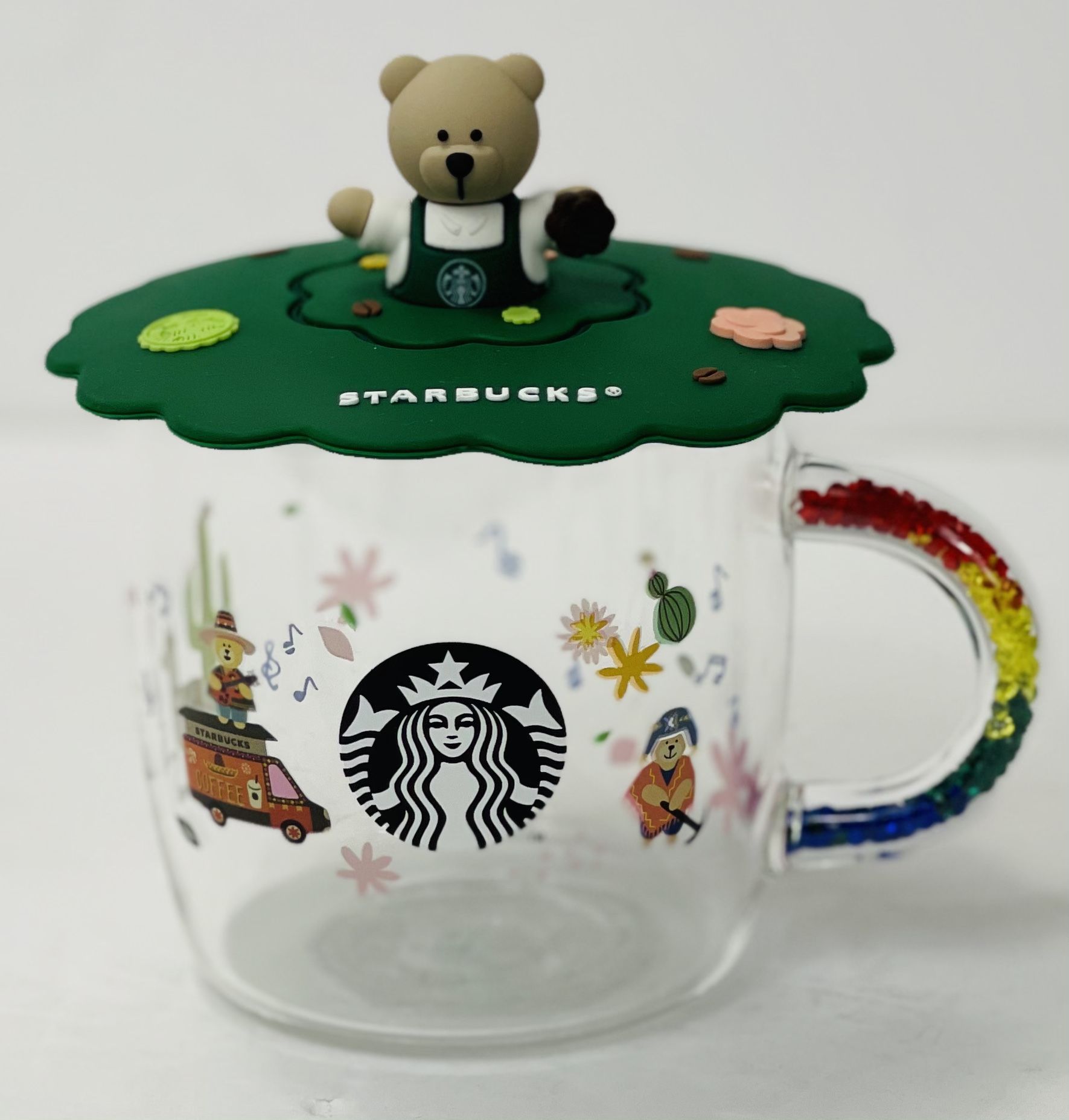 Starbucks Color-change Glass Coffee Cup Rainbow Handle with 3D Lid Chri