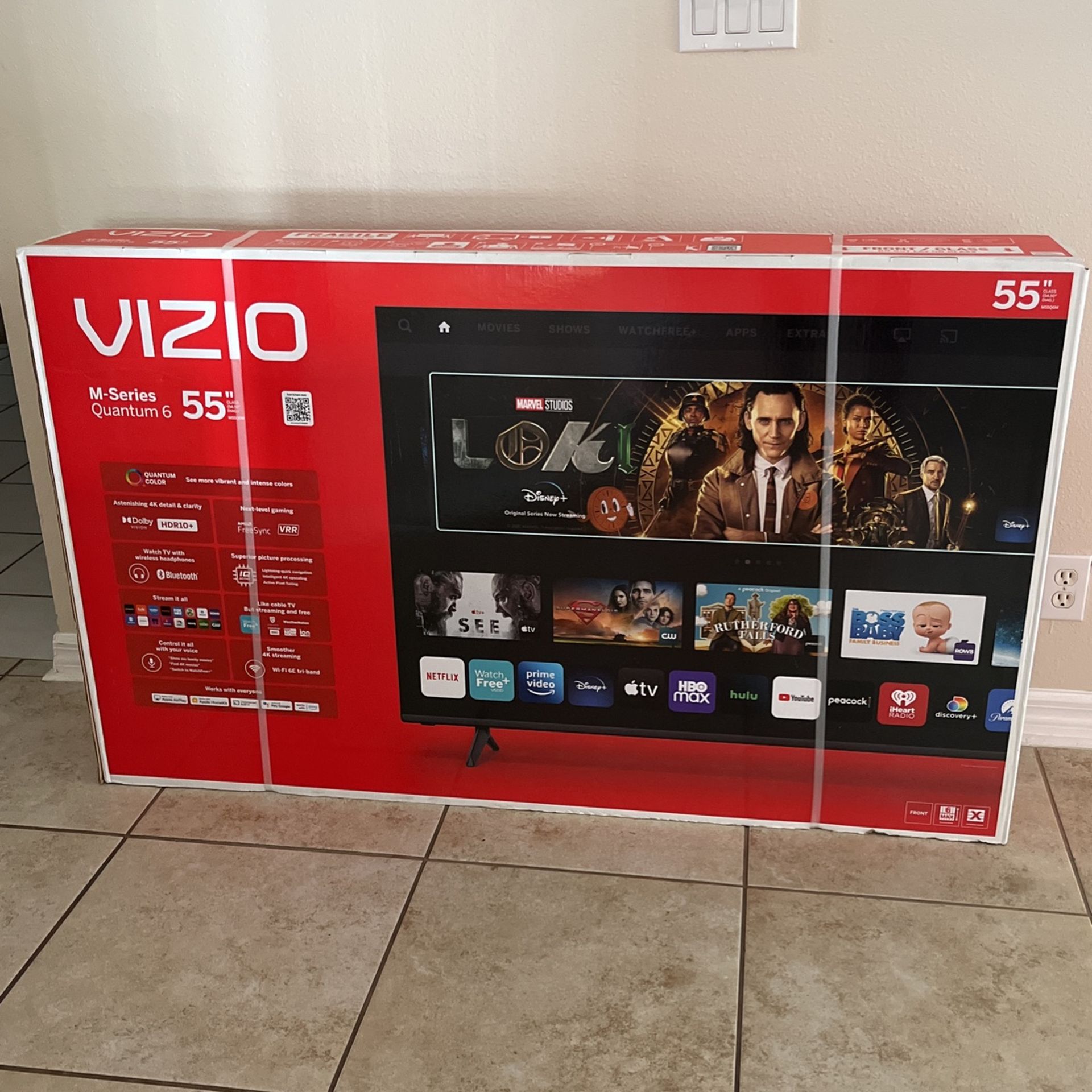 Never been open. 55inch VIZIO M-Series Quantum 6. My mom purchased it and never used it. Asking 300.