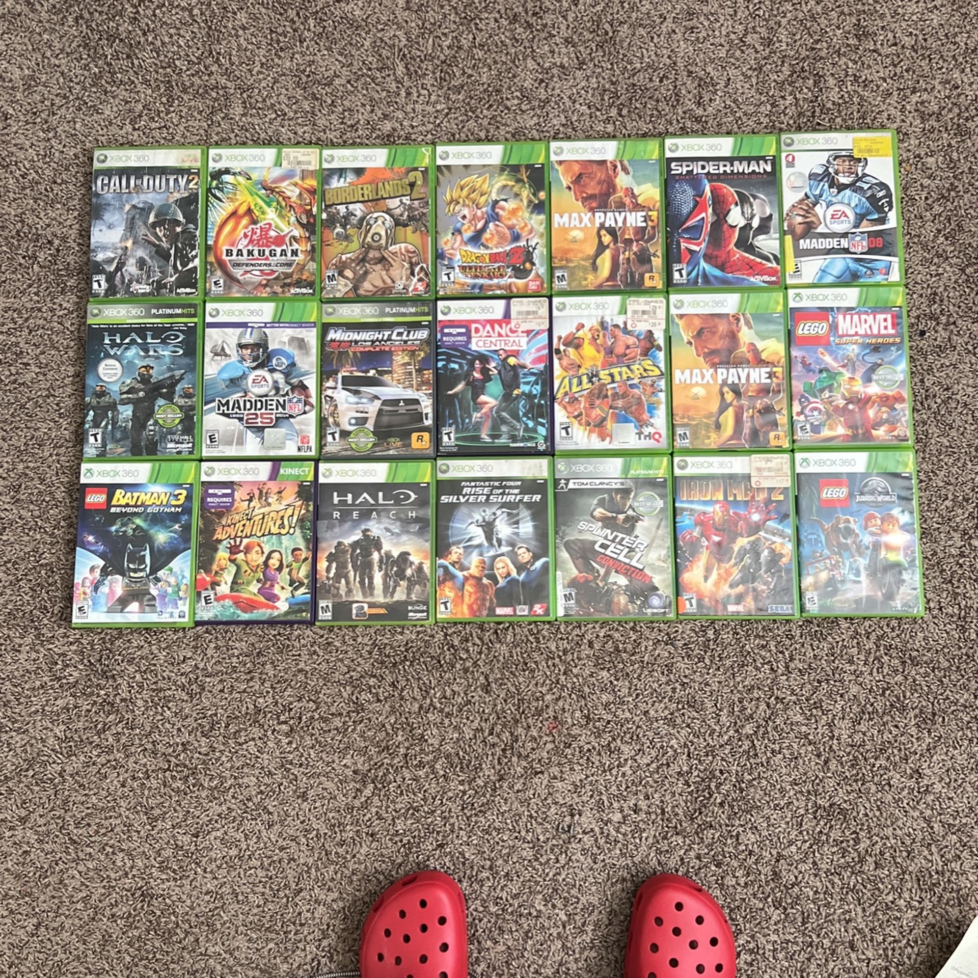 There is 21 games in total I don’t have an XBOX 360 anymore so I don’t need these If you just want singular, text me $10 for one NOT all of it